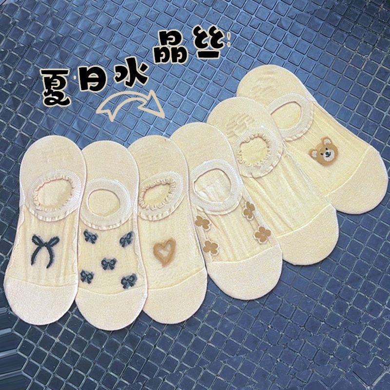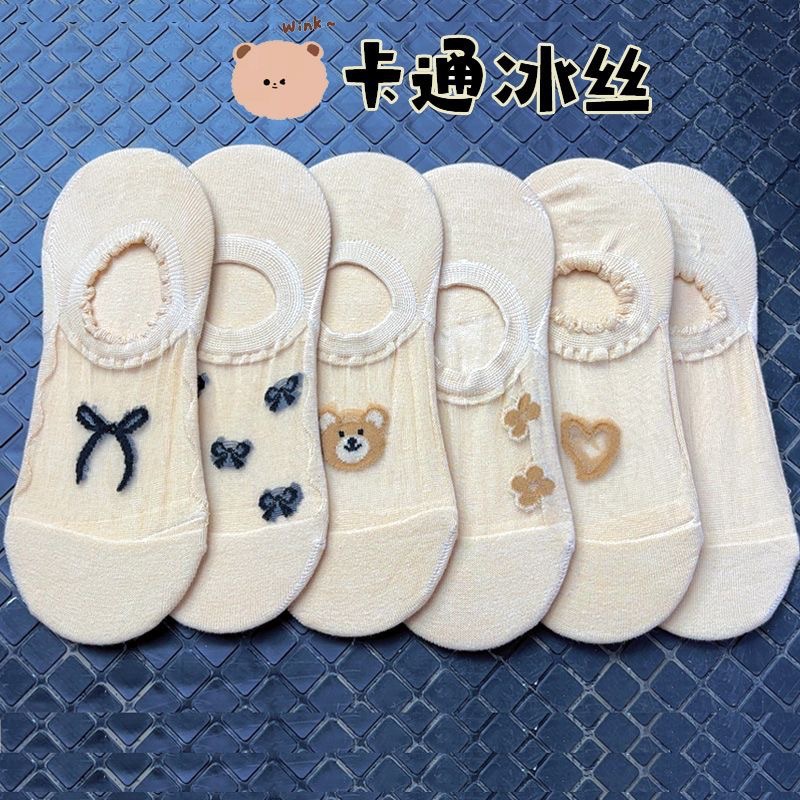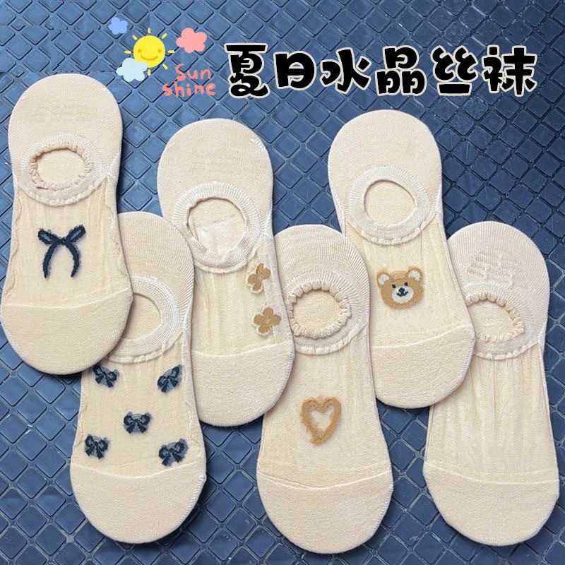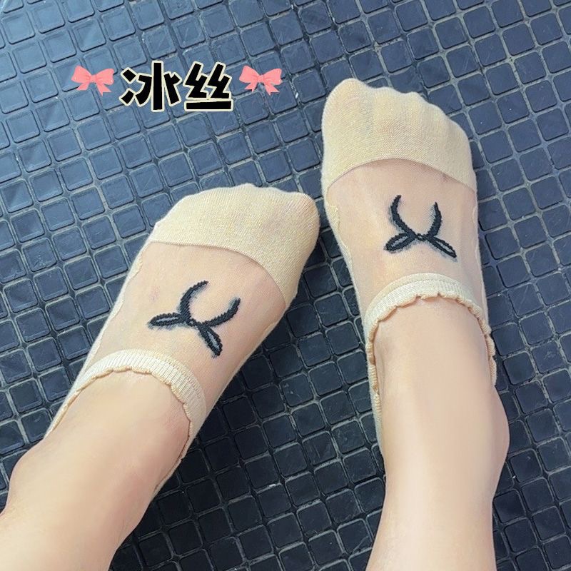 양말 여성의 여름 아이스 실크 레이스 입 보이지 않는 양말 일본식 Ins 스킨 컬러 통기성 코튼 하단 안티 드롭 실리콘 양말스토어 가기