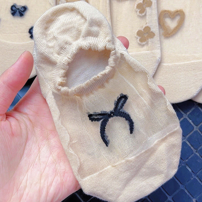 양말 여성의 여름 아이스 실크 레이스 입 보이지 않는 양말 일본식 Ins 스킨 컬러 통기성 코튼 하단 안티 드롭 실리콘 양말