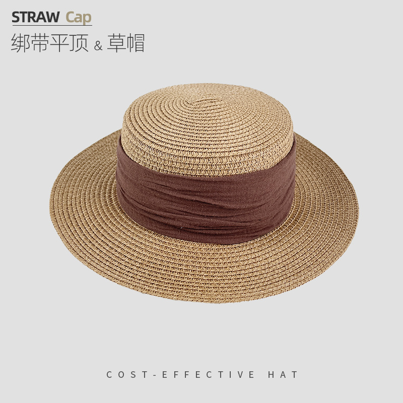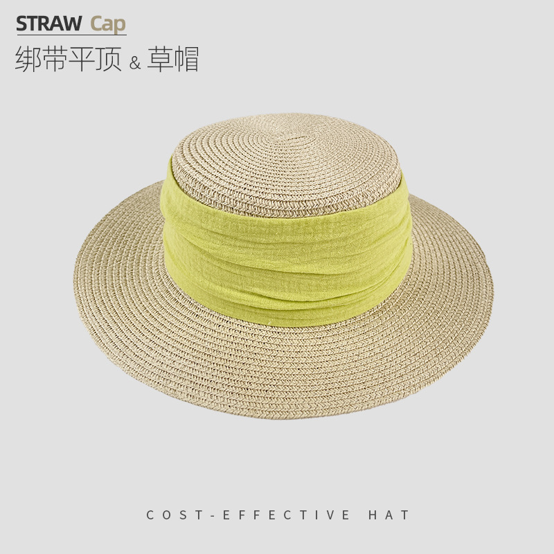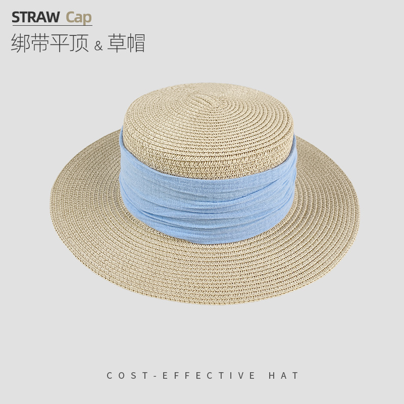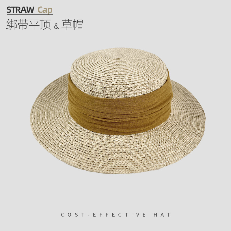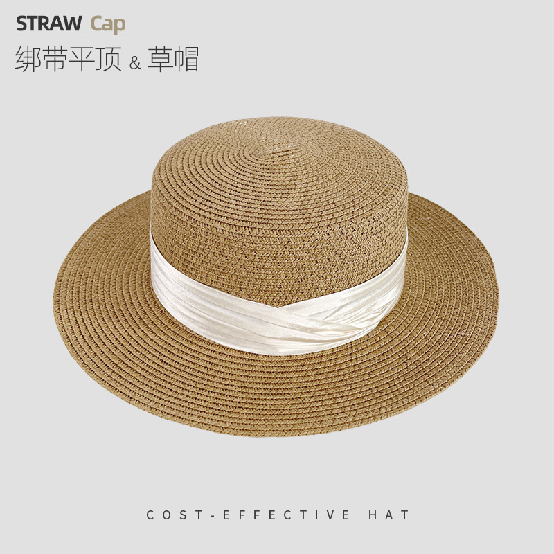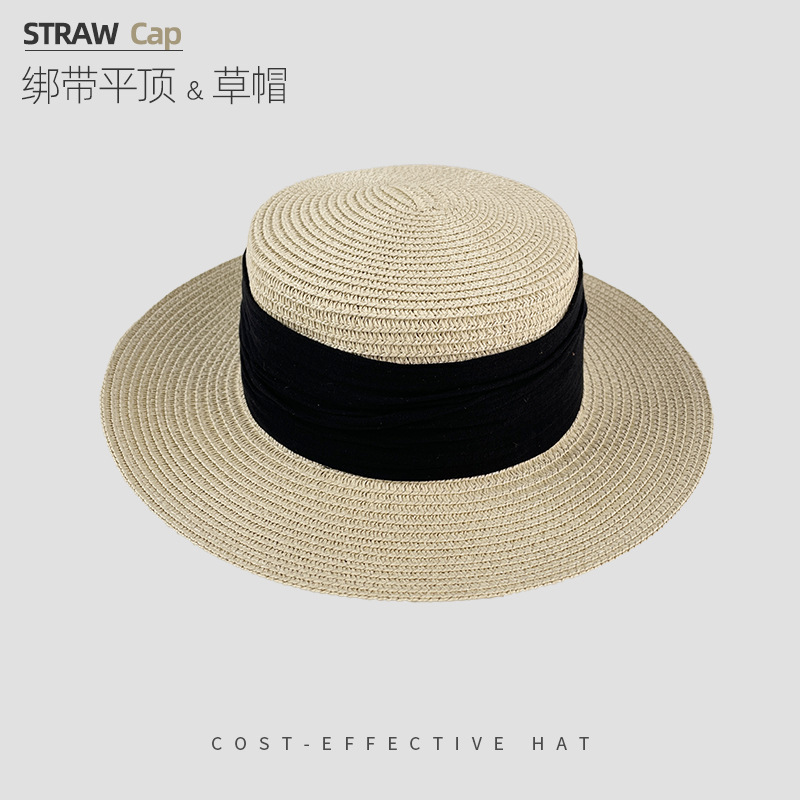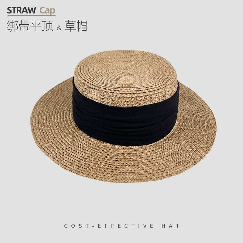 해변 해변 밀짚 모자 여성 여름 태양 보호 큰 챙 태양 모자 하이 엔드 모자 프랑스 플랫 탑 밀짚 모자