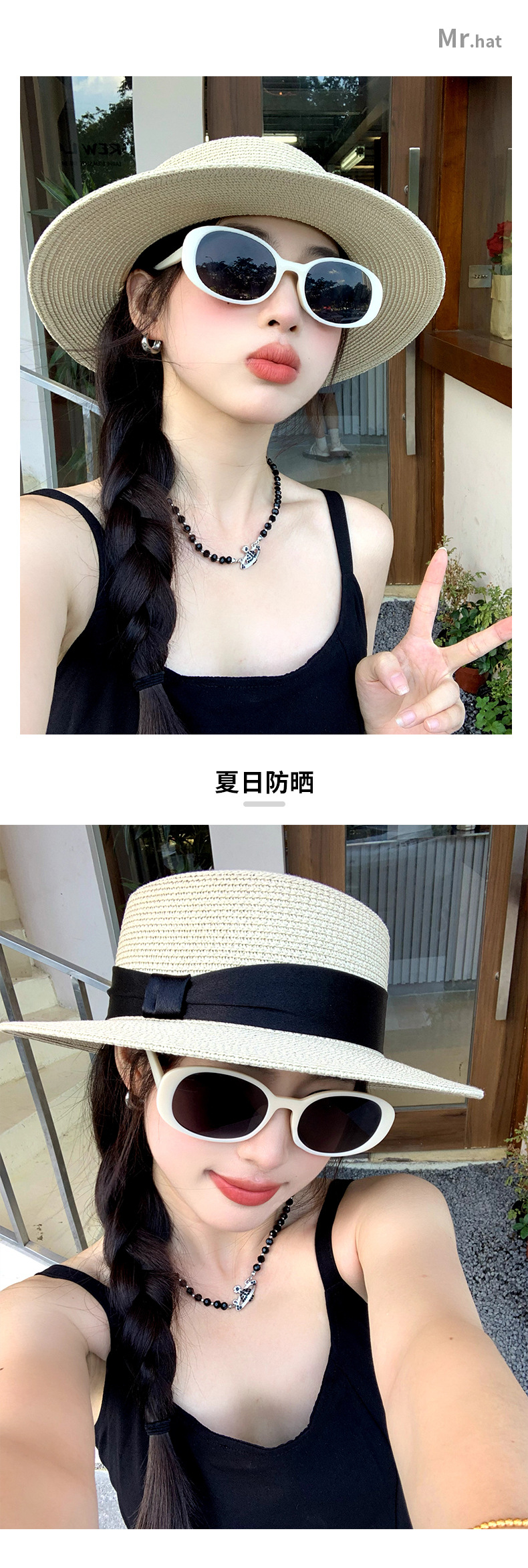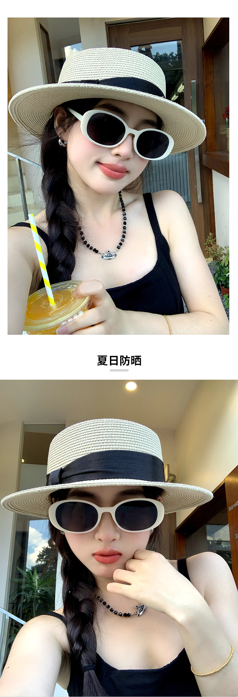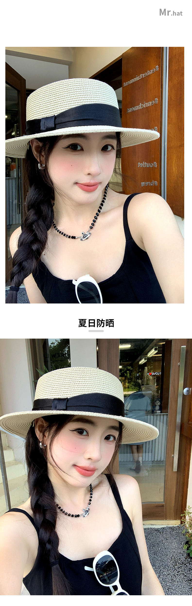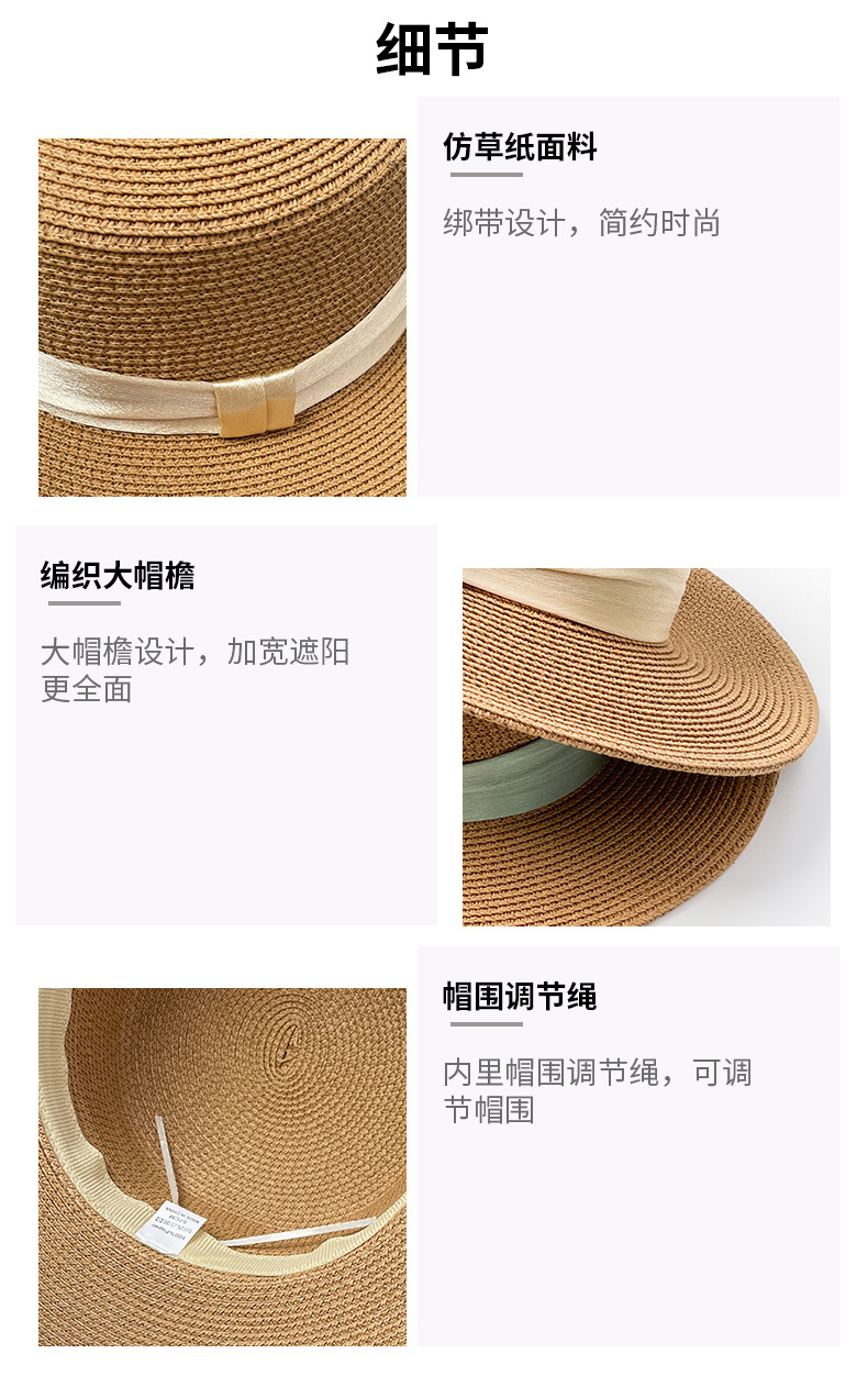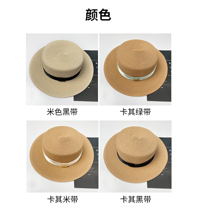 甜美风平顶草帽草编帽子女款夏季礼帽大帽檐防晒遮阳帽海边沙滩帽