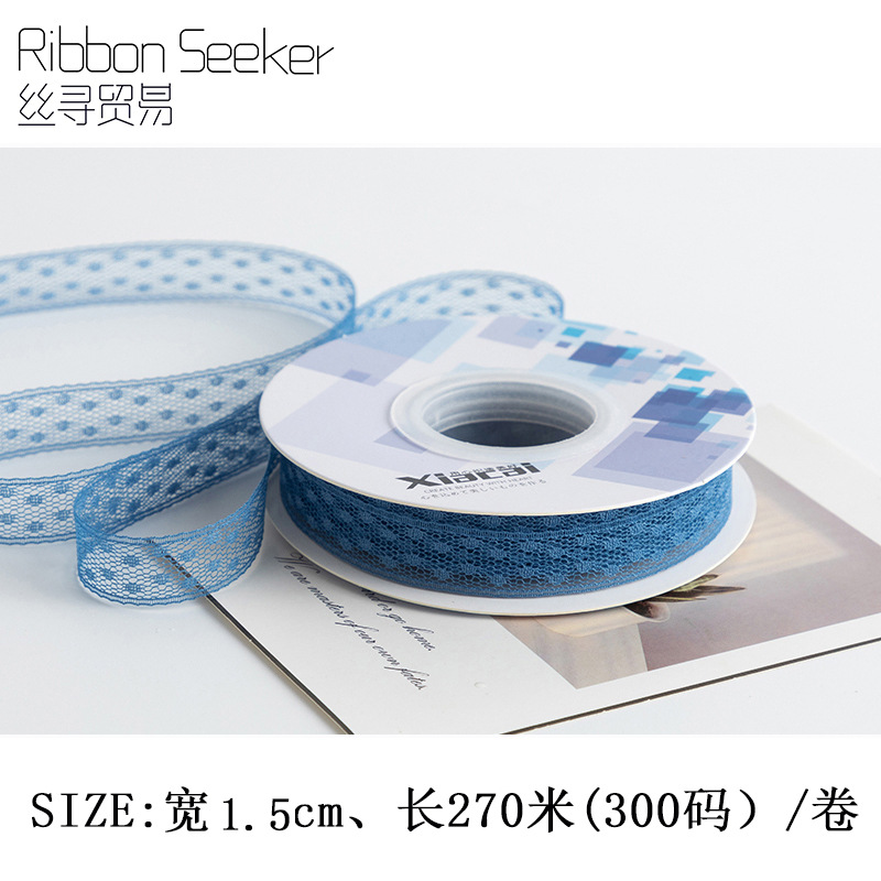 • [스노우 도트 레이스] 1.5*25y 사파이어 블루