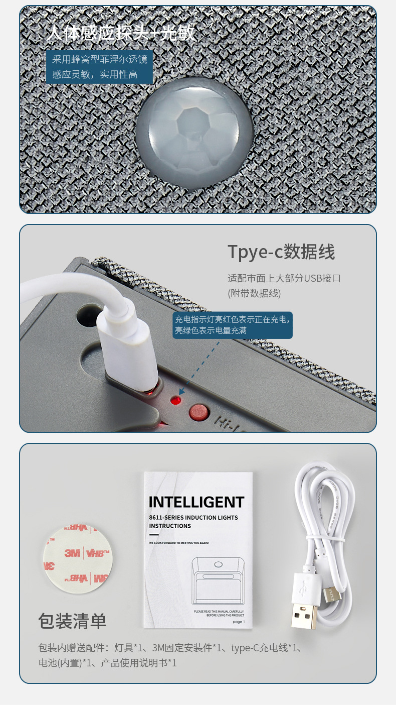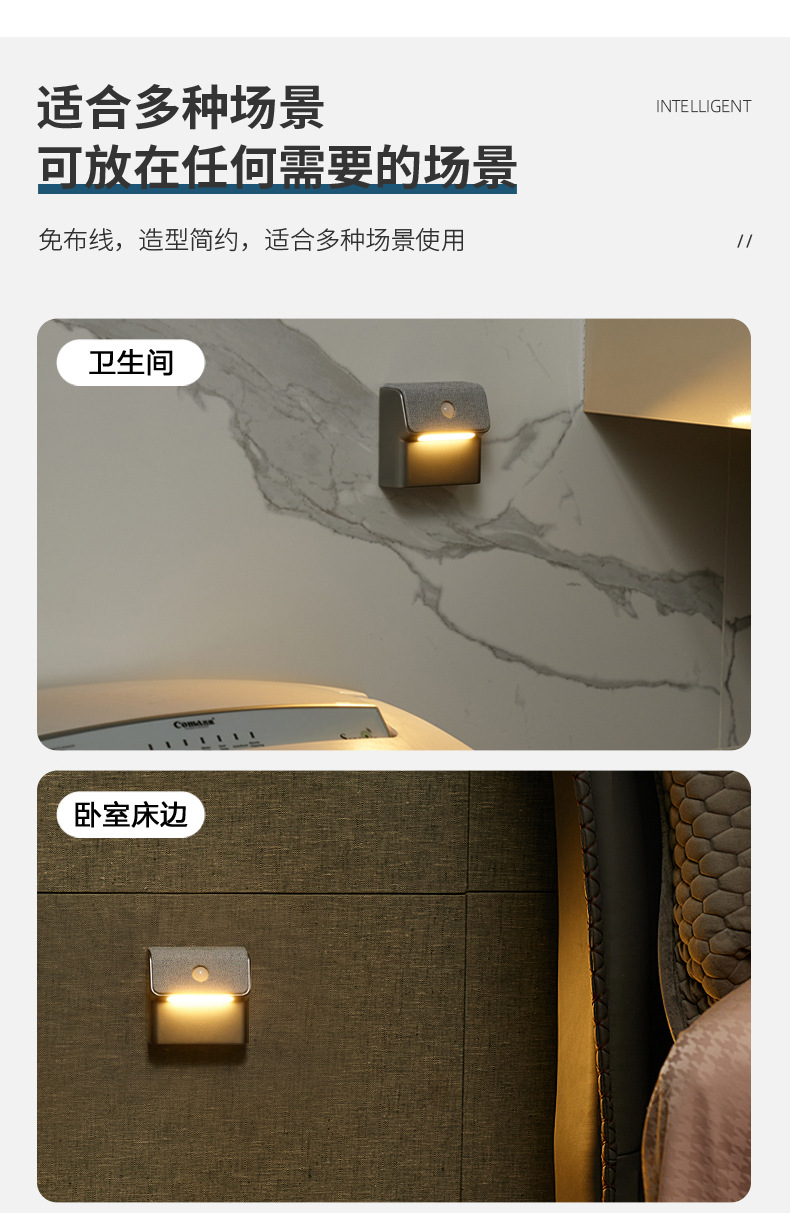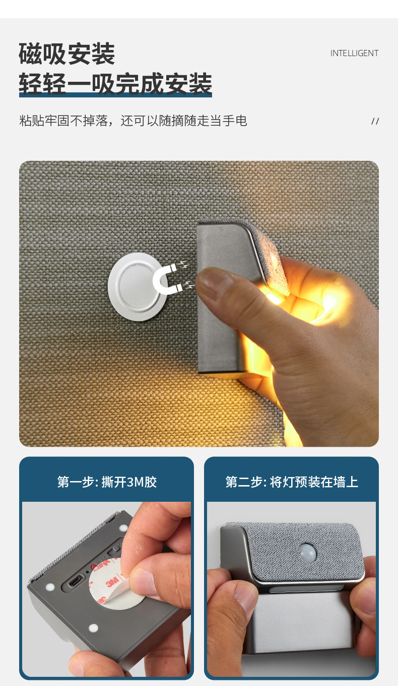 국경을 넘는 연결 충전식 자기 흡입 침실 침대 옆 야간 조명, 아마존의 인기 상품, 복도 계단 통로 센서 스마트