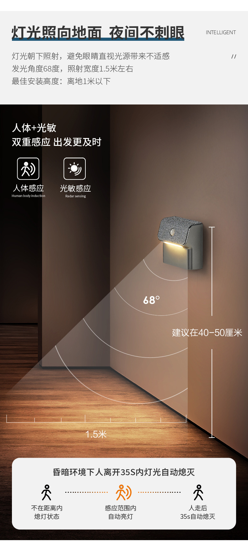 국경을 넘는 연결 충전식 자기 흡입 침실 침대 옆 야간 조명, 아마존의 인기 상품, 복도 계단 통로 센서 스마트스토어 가기