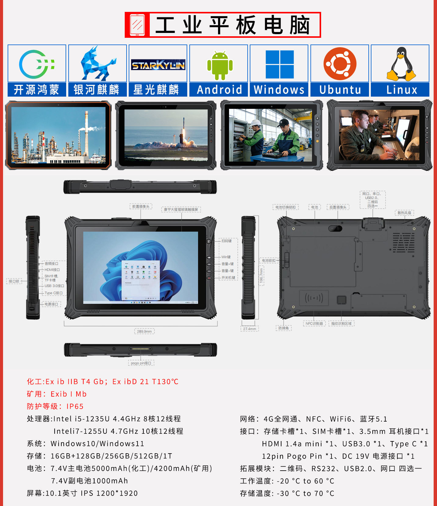 KJD3.7(B) 10.1인치 산업용 삼중 보호 태블릿 컴퓨터 4G 네트워크 2D 스캐너 NFC 탈착식 배터리