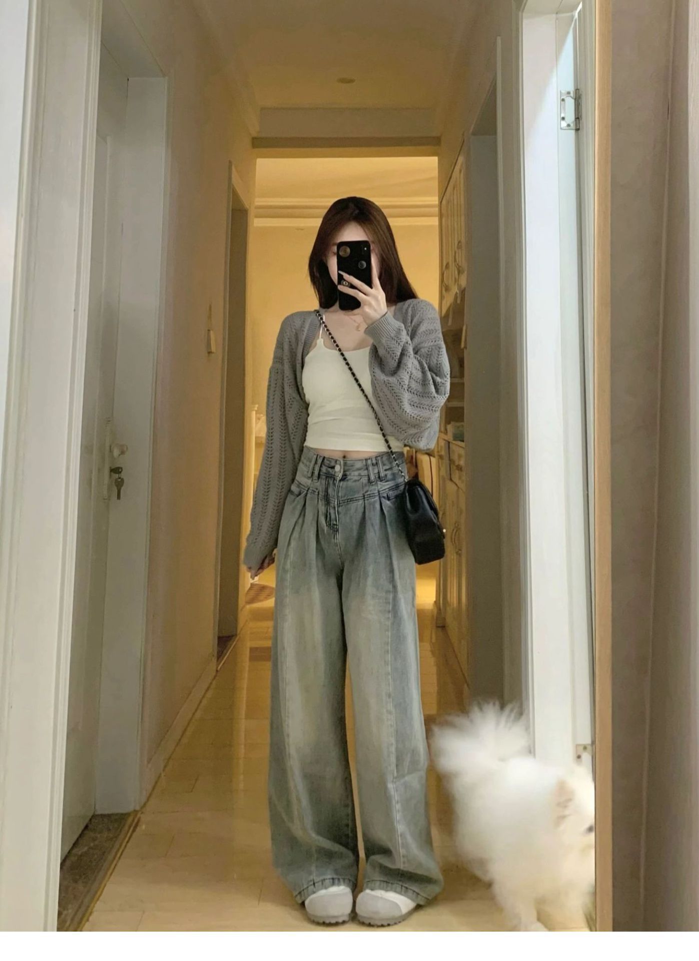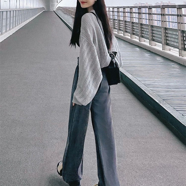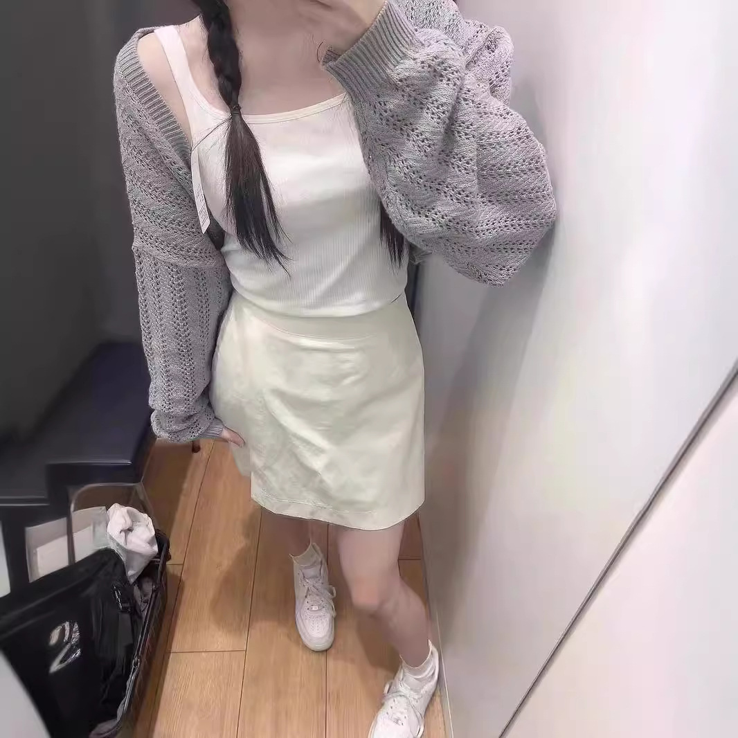 회색 얇은 할로우 아웃 선 스크린 니트 카디건 여성 여름 최고 고급 감각 외부 솔리드 컬러 블라우스 짧은 목도리