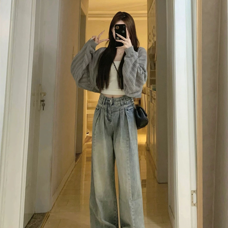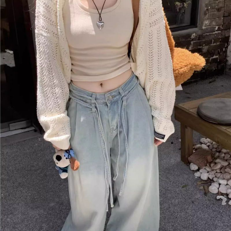 회색 얇은 할로우 아웃 선 스크린 니트 카디건 여성 여름 최고 고급 감각 외부 솔리드 컬러 블라우스 짧은 목도리스토어 가기