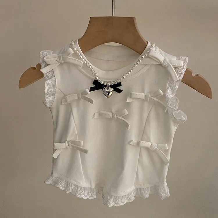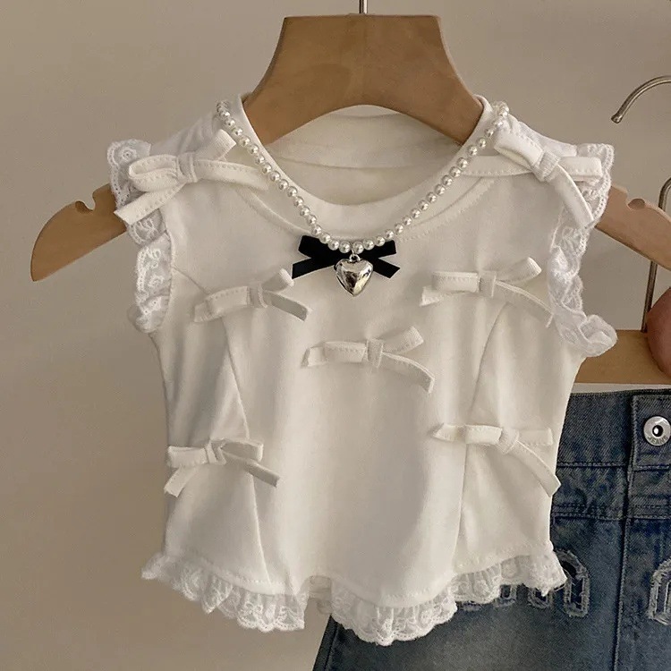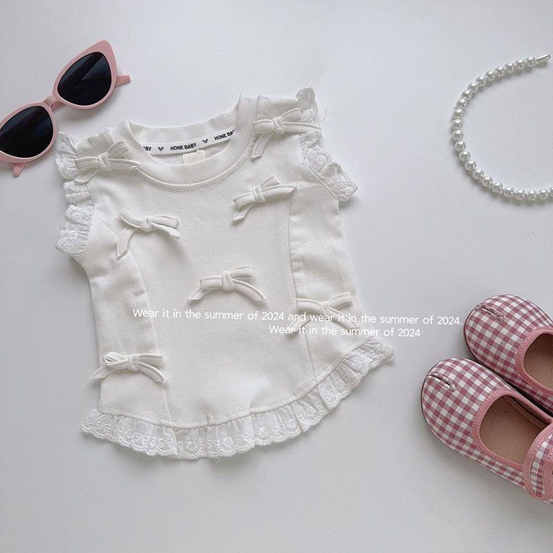 100 면화 여름 새 한국판 중소 어린이 여성 아기 대형 3 차원 레이스 민소매 조끼 티셔츠
