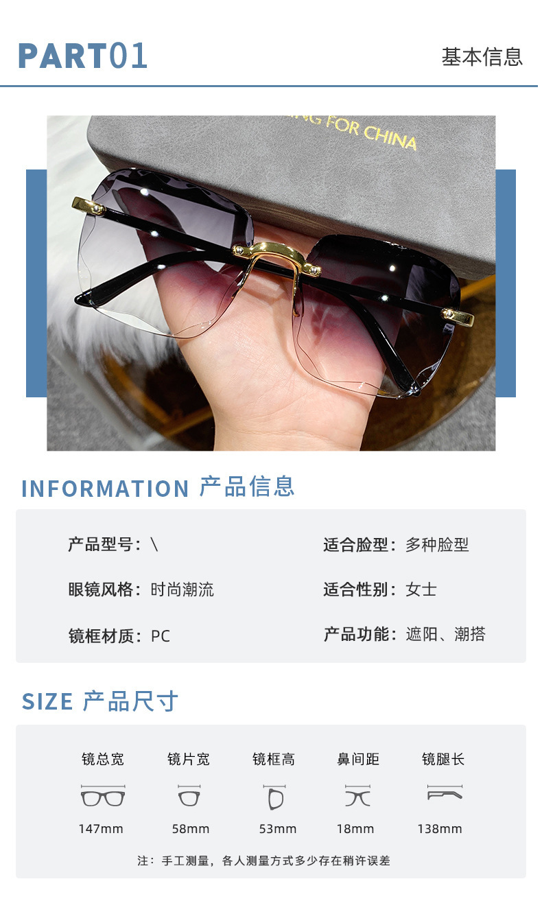 새로운 유행 한국식 프레임리스 선글라스 인터넷-유명한 같은 스타일의 독특한 거리 사진 선글라스 자외선 방지 선글라스스토어 가기