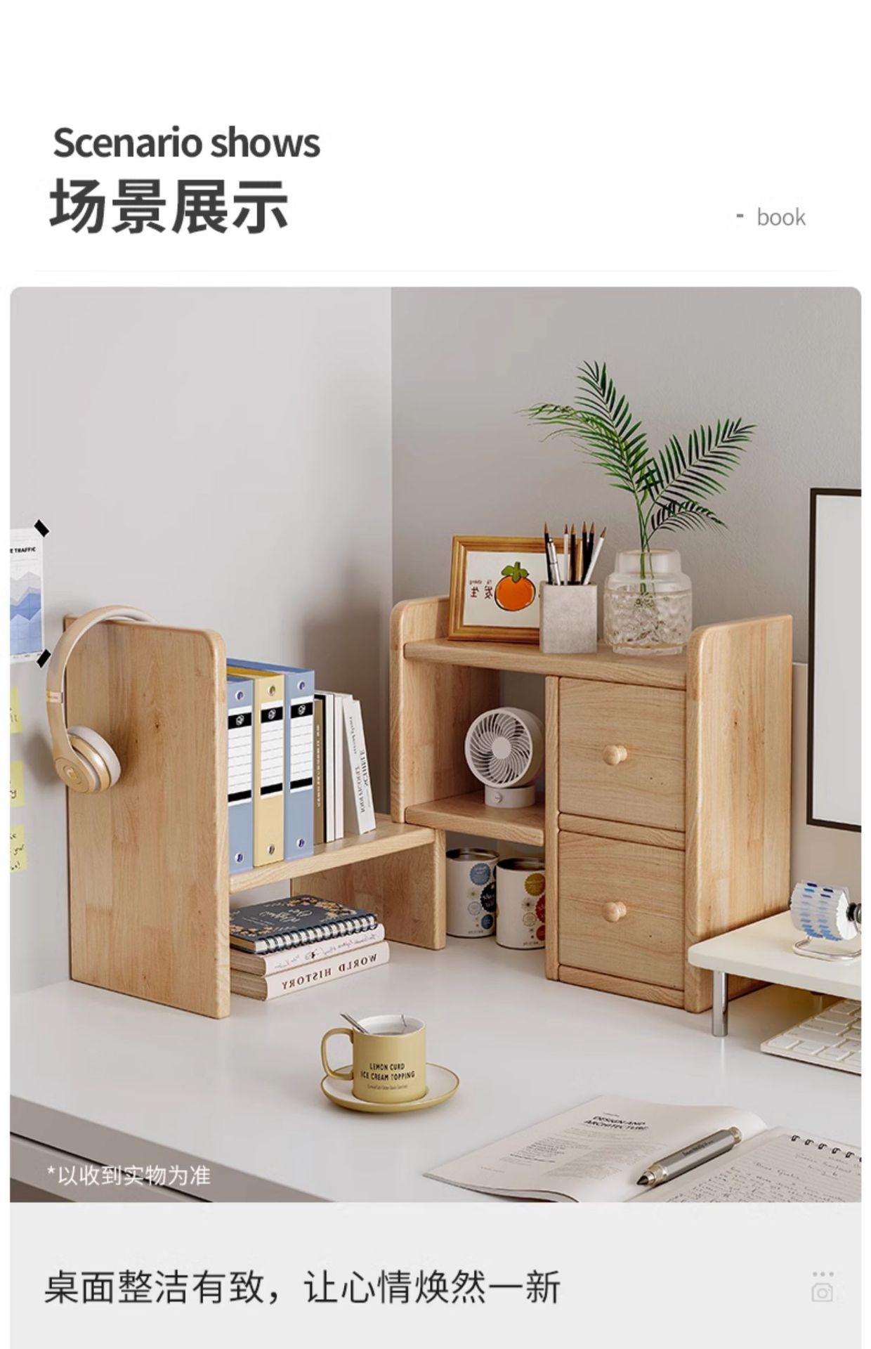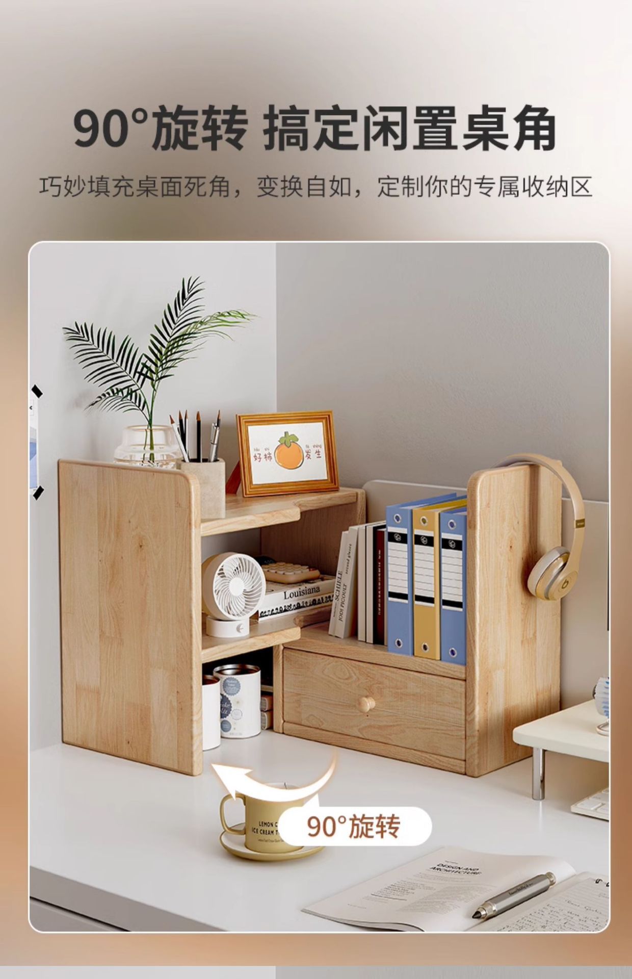 实木书桌收纳置物架桌面简易多层办公室工位桌上转角柜书架书柜