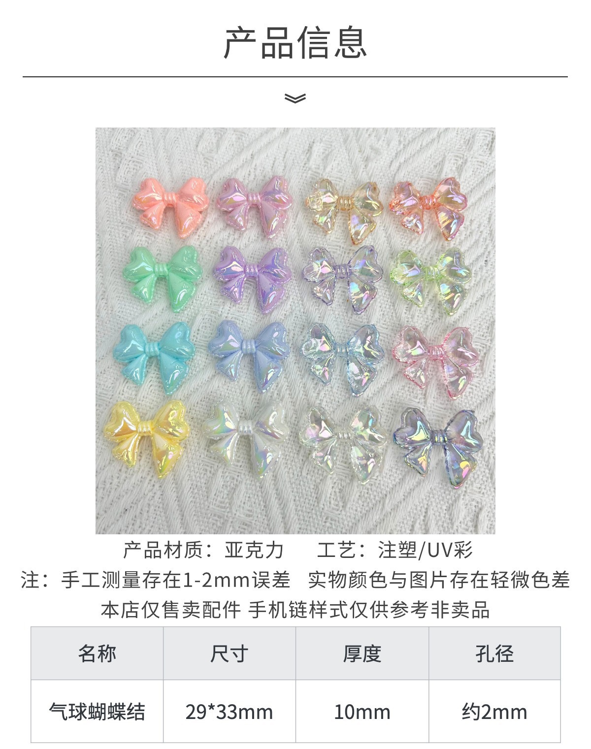 Ins 스타일 투명한 여름 UV 컬러 도금 풍선 활 Diy 목걸이 팔찌 머리핀 구슬 소재 보석 액세서리