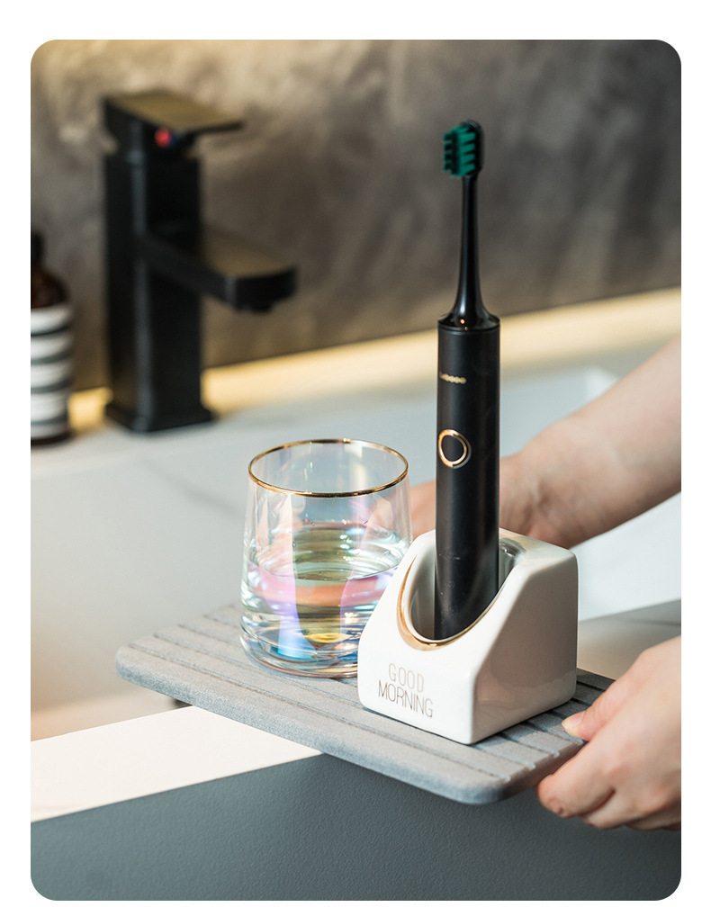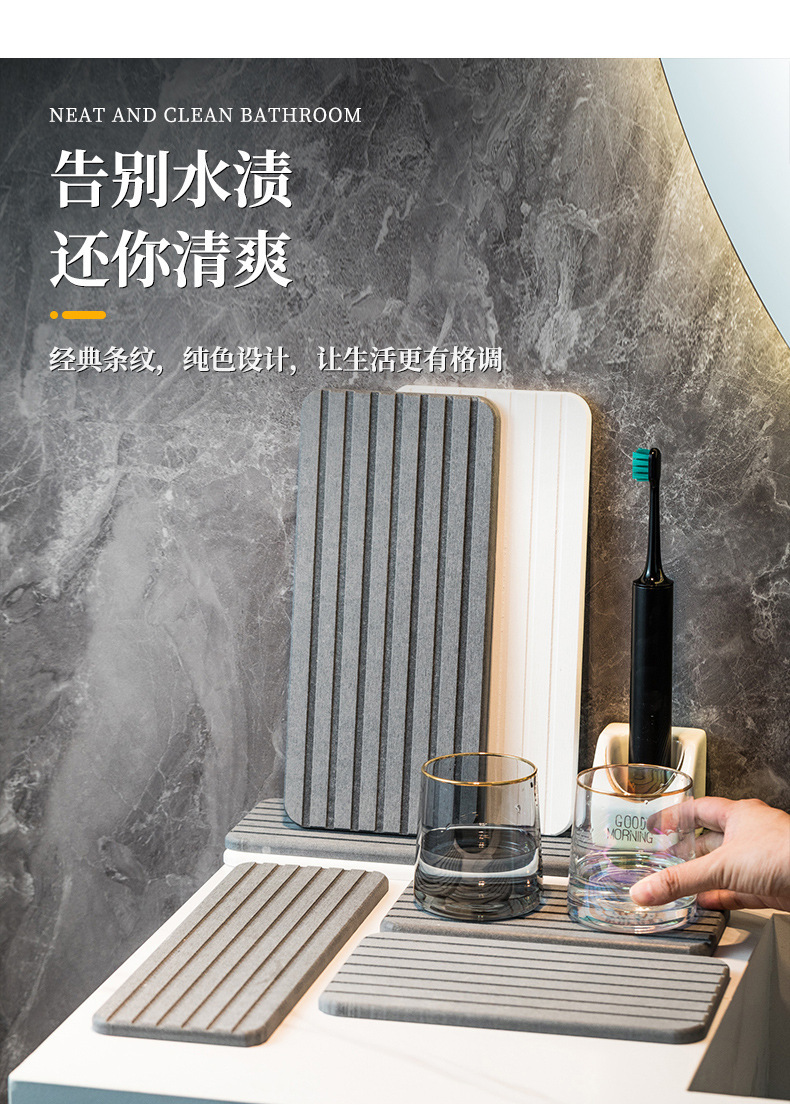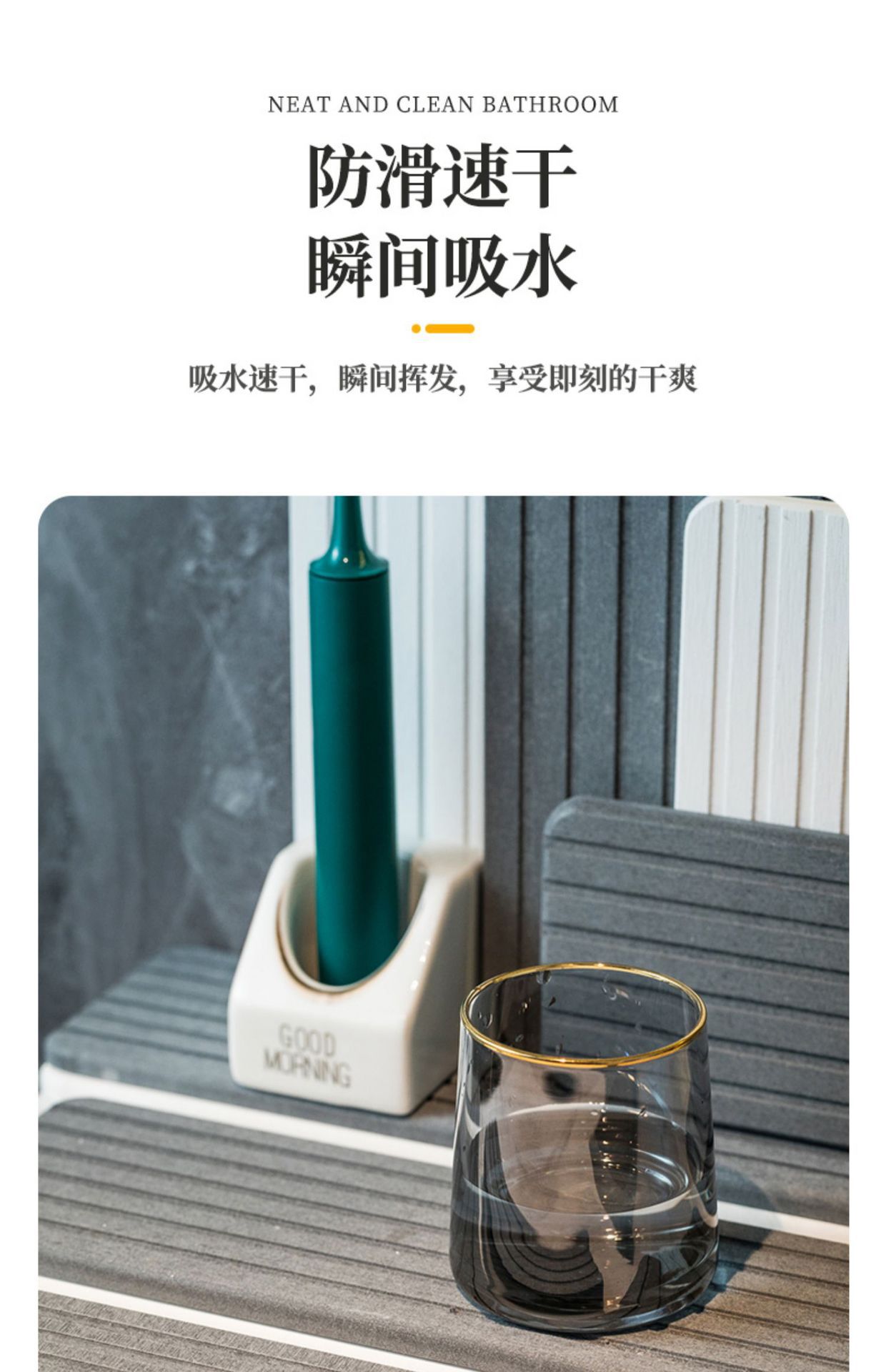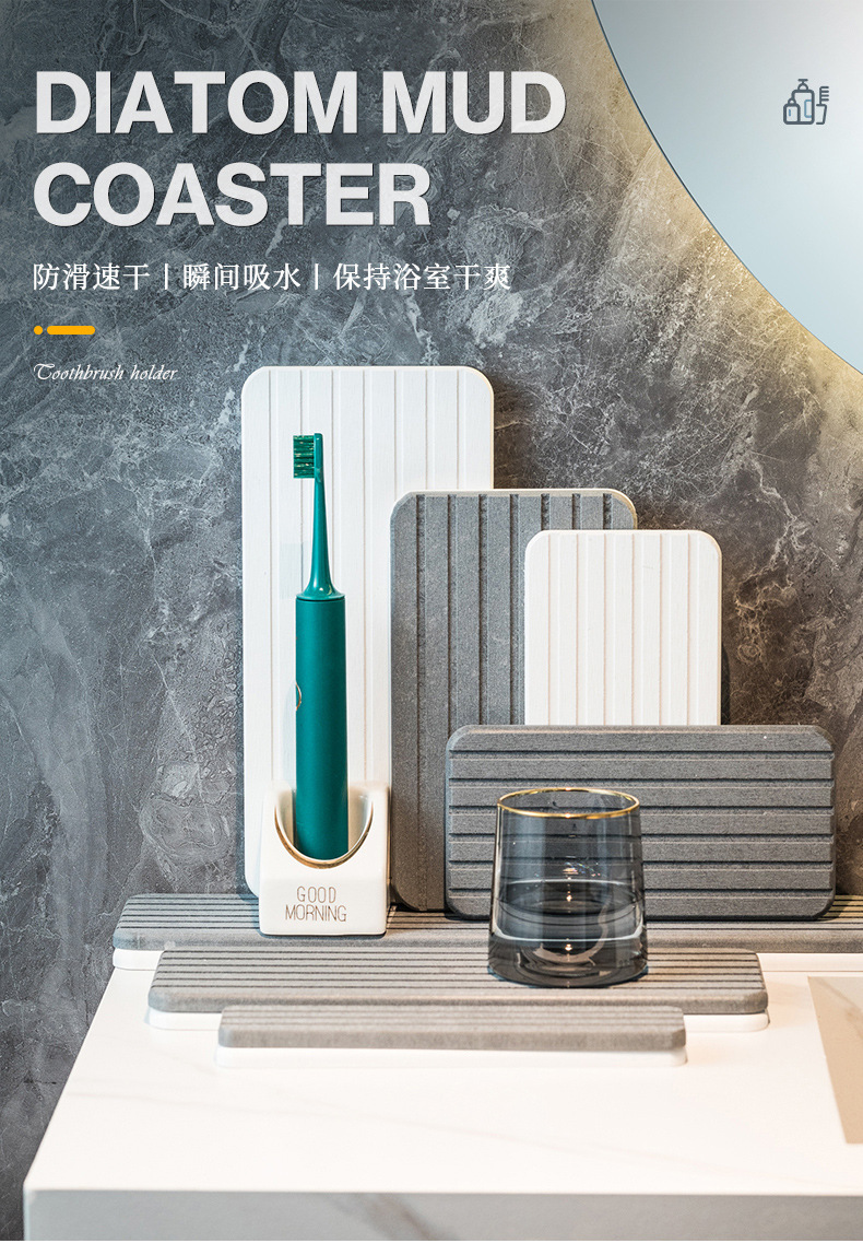 2 조각 흡수성 규조토 코스터 직사각형 그루브 디자인 흡수성 돌 싱크 화장실 보관 패드