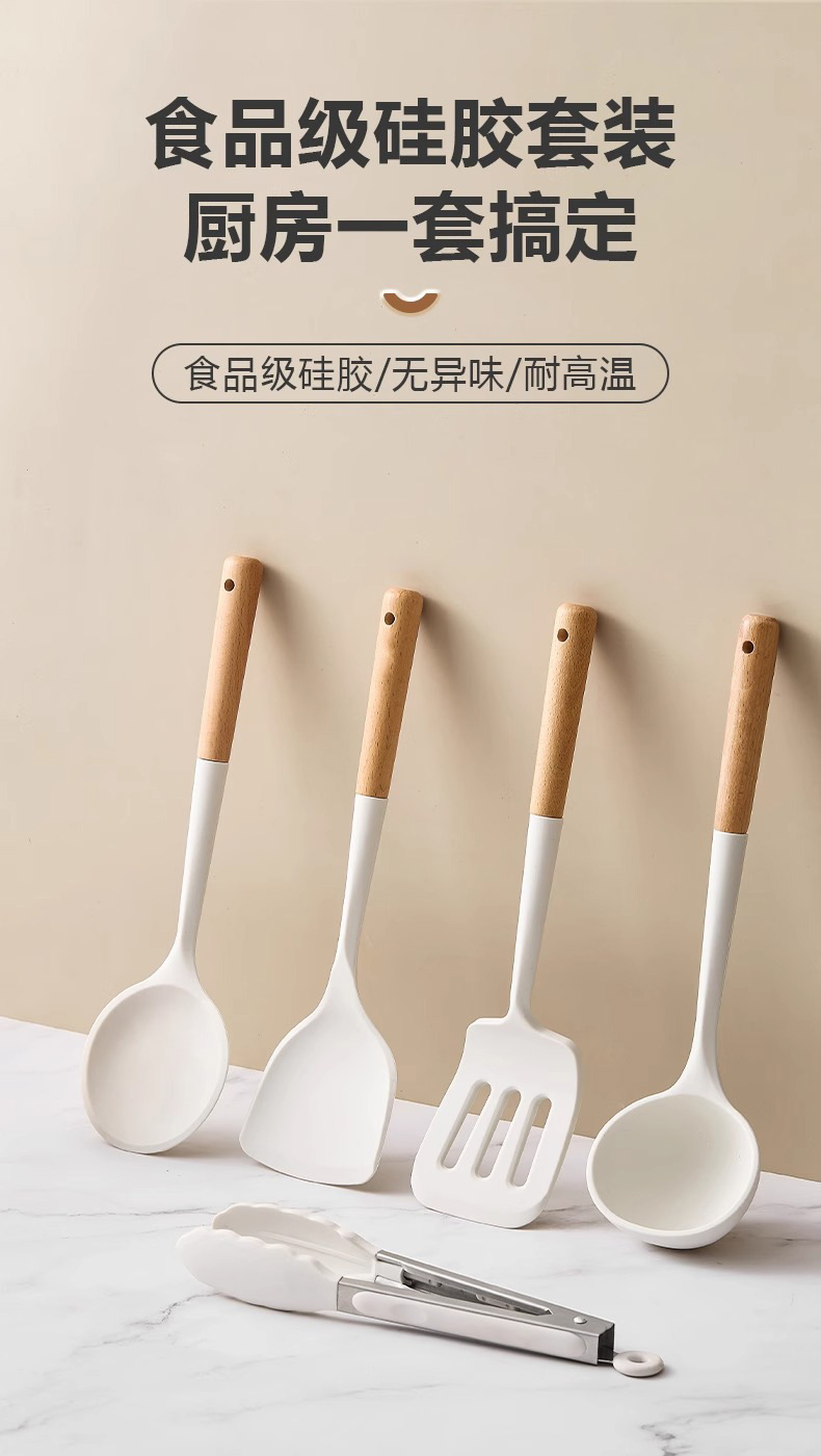 가정용 주방 용품 실리콘 주걱 세트 숟가락 주방 용품 고온 내성 주걱 소쿠리 제조 업체 도매