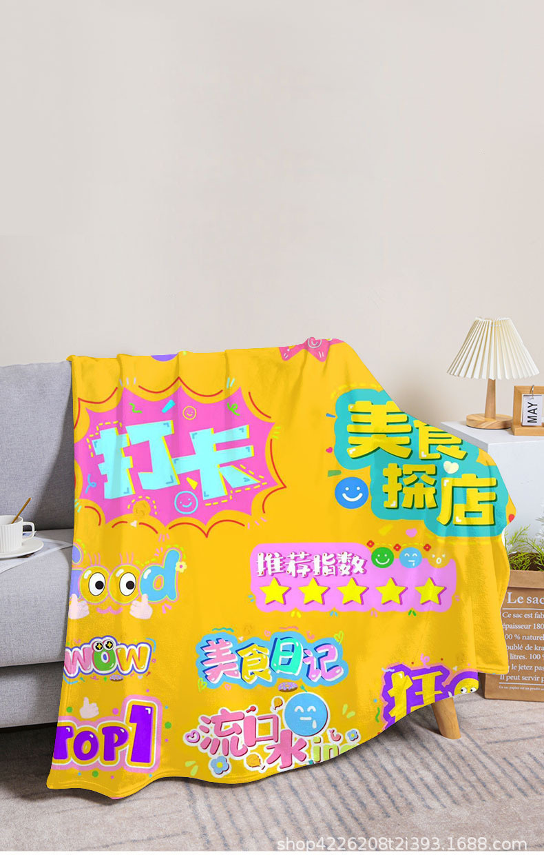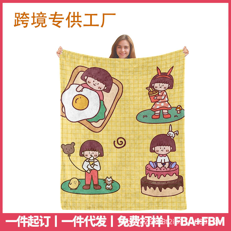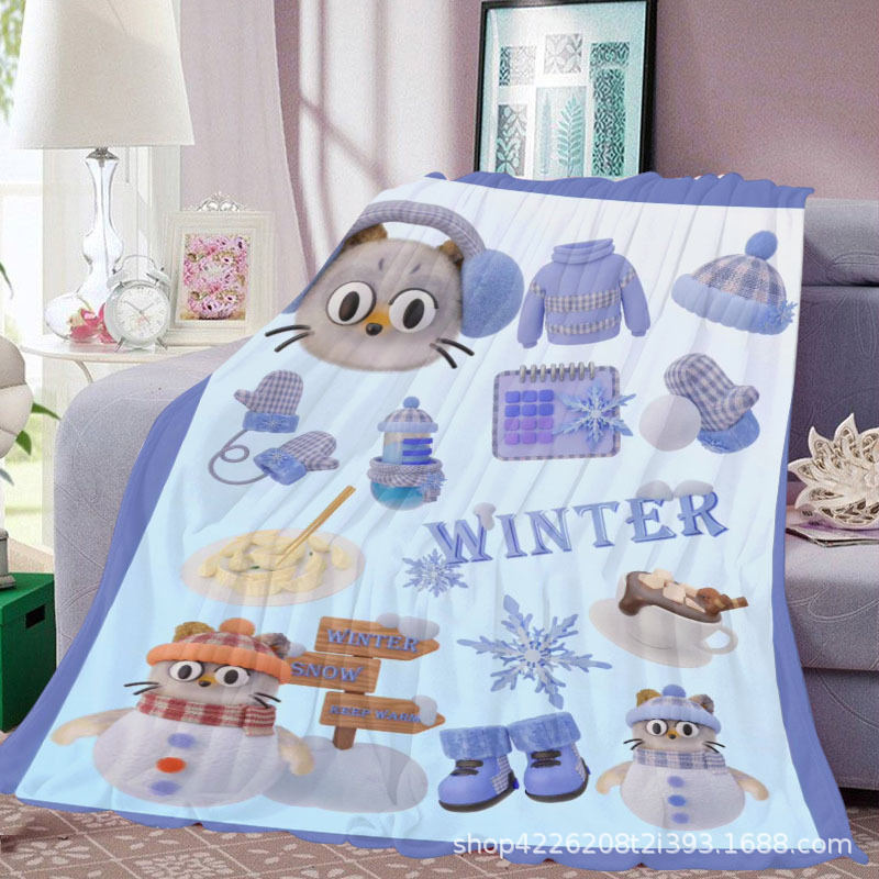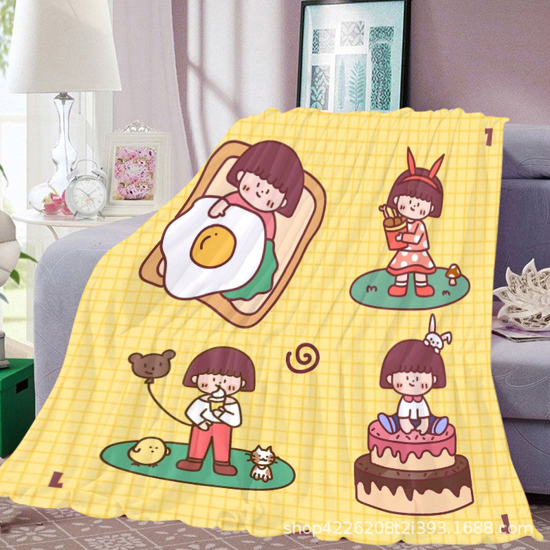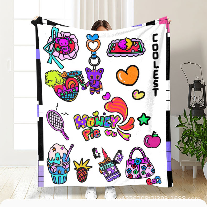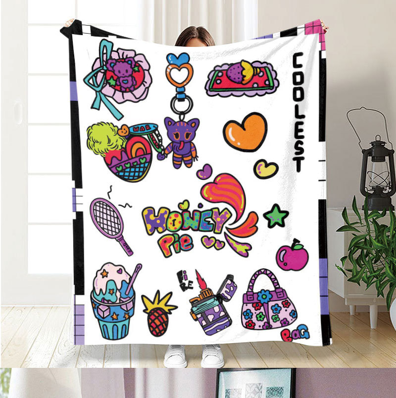 아마존 만화 스티커 플란넬 단면 디지털 인쇄 담요 두꺼운 낮잠 에어컨 담요 커버 담요 광장 담요