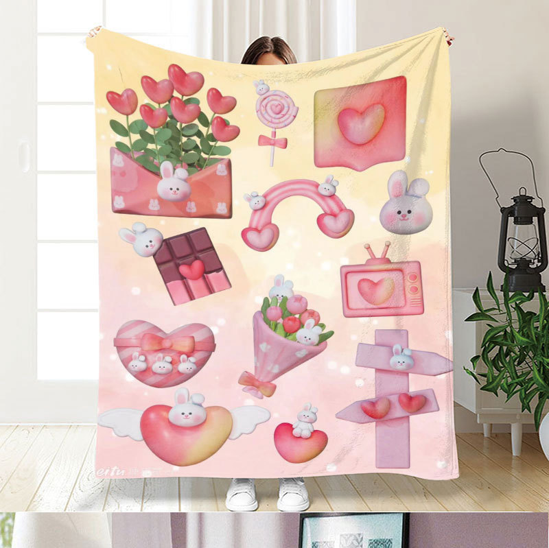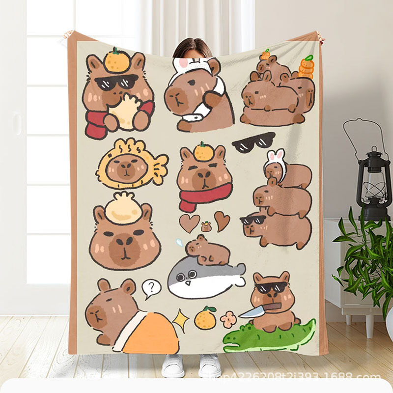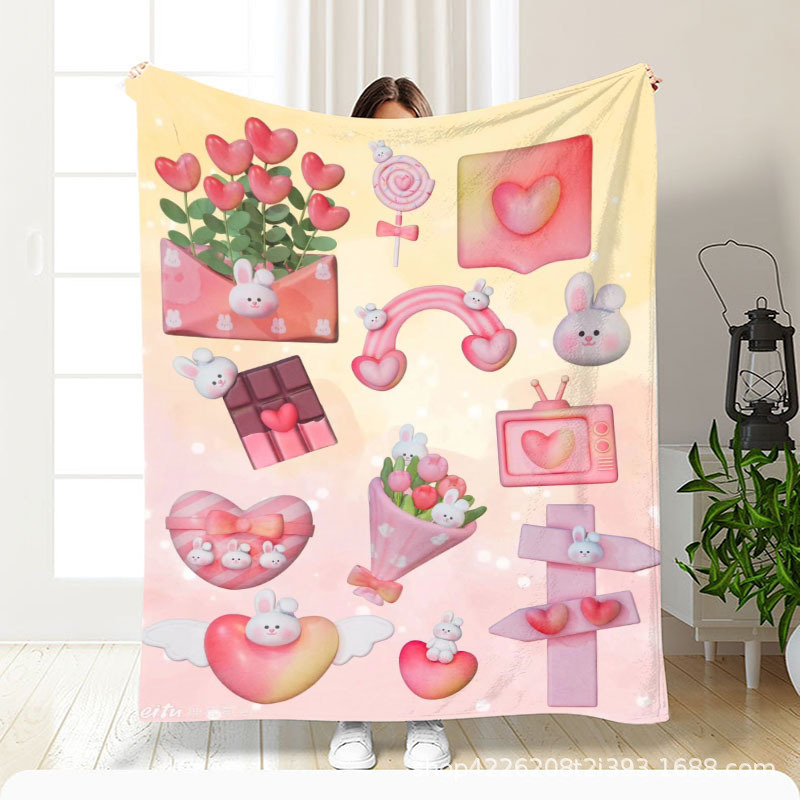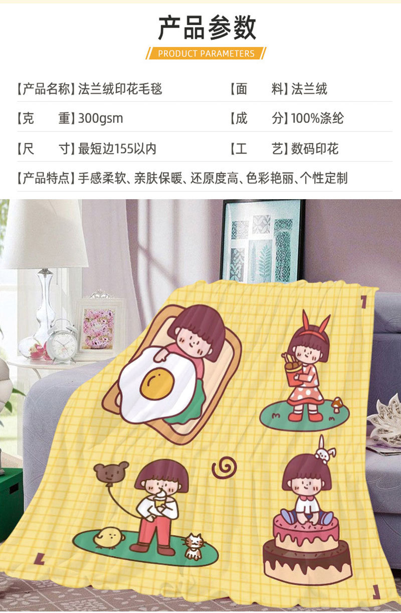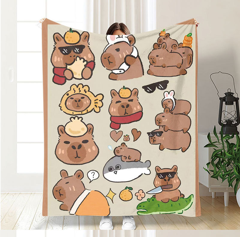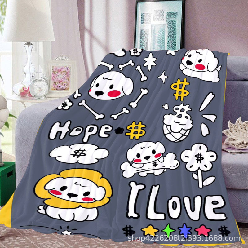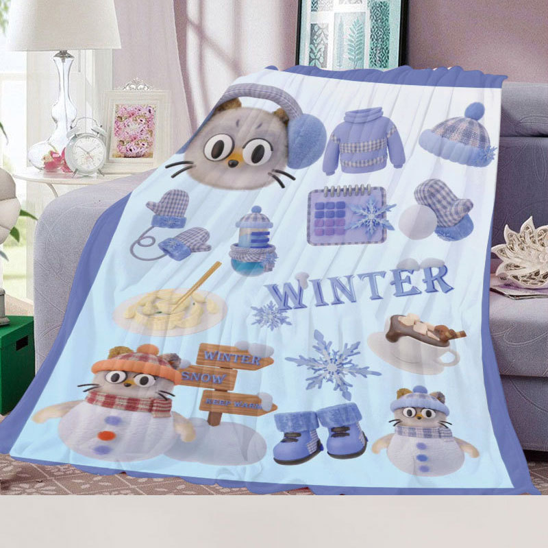아마존 만화 스티커 플란넬 단면 디지털 인쇄 담요 두꺼운 낮잠 에어컨 담요 커버 담요 광장 담요