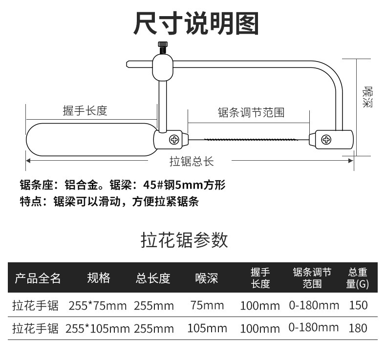 • 조정 가능한 쇠톱 프레임 12inch