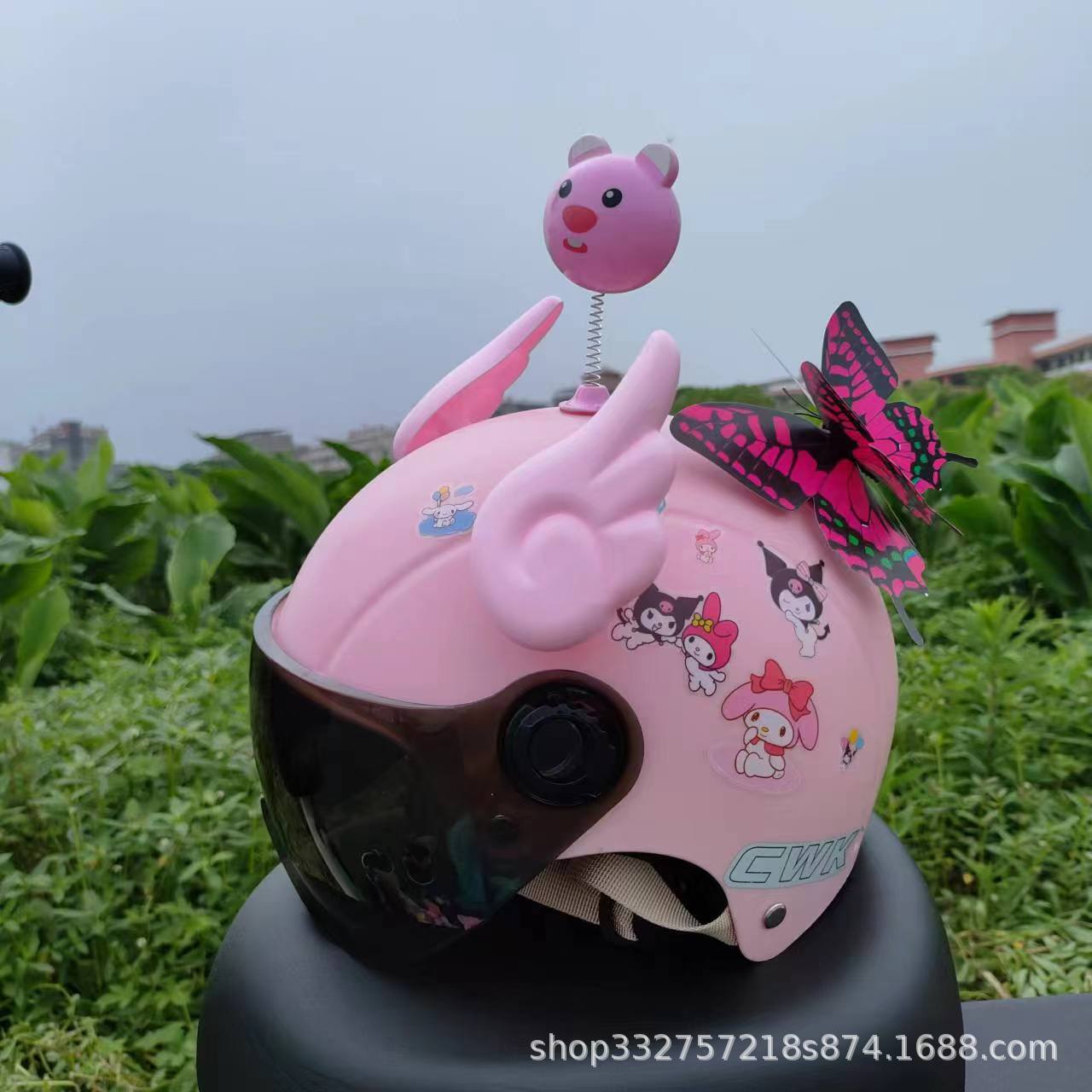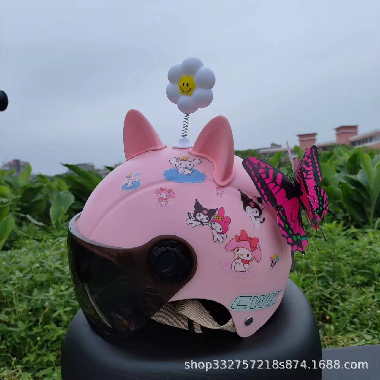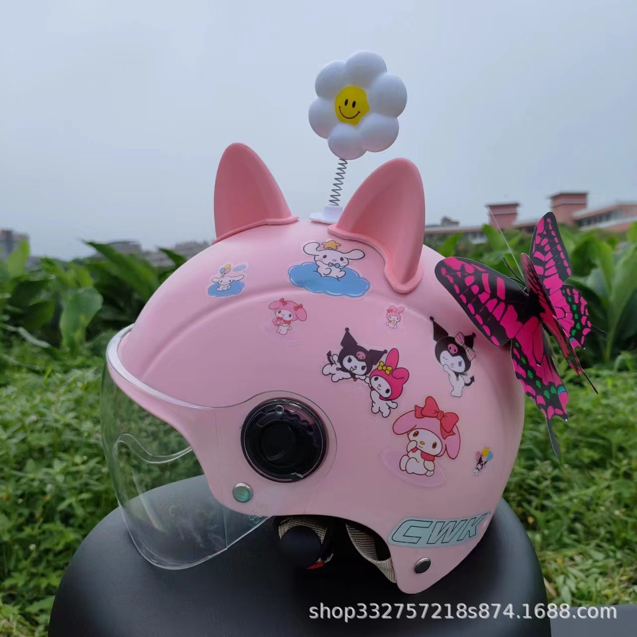 • 핑크 쿠로메 + 투명 거울 + 핑크 고양이 귀 + 작은 꽃 + 핑크 나비