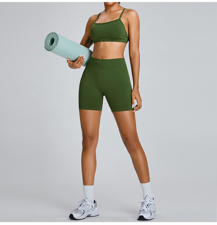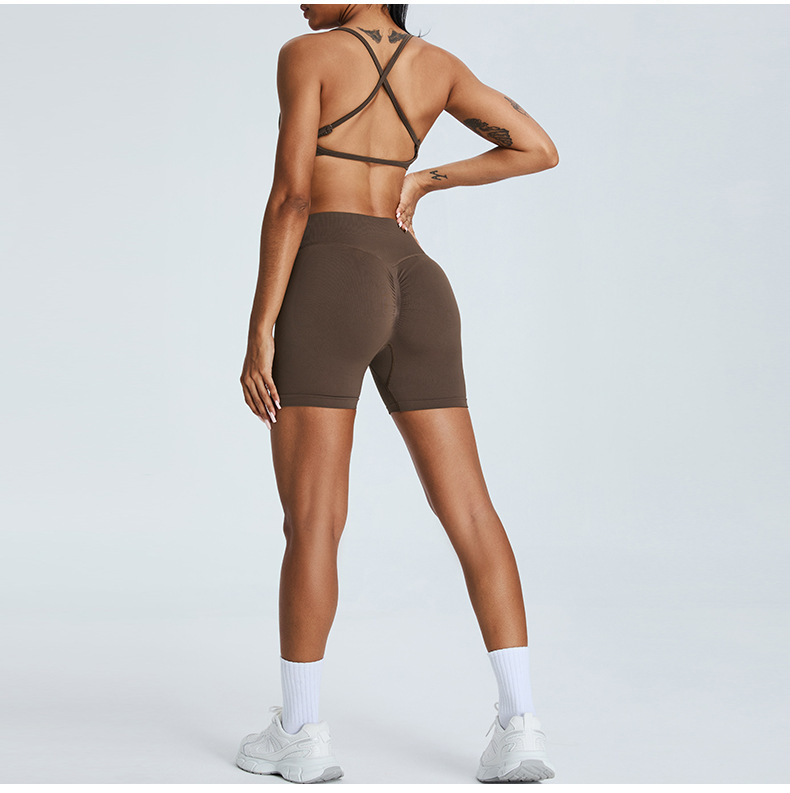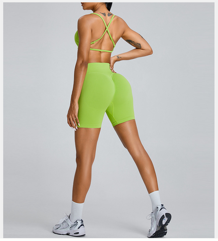 유럽과 미국의 원활한 요가 세트 세트 여성 복숭아 높은 허리 엉덩이 리프팅 스포츠 세트 야외 빠른 건조 피트니스 세트