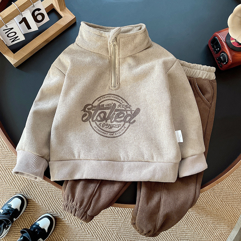 남자 아기 기모 반 높은 칼라 지퍼 세트 어린이 가을과 겨울 2 아기 옷 3 아동복 1-4 세 소년 겨울