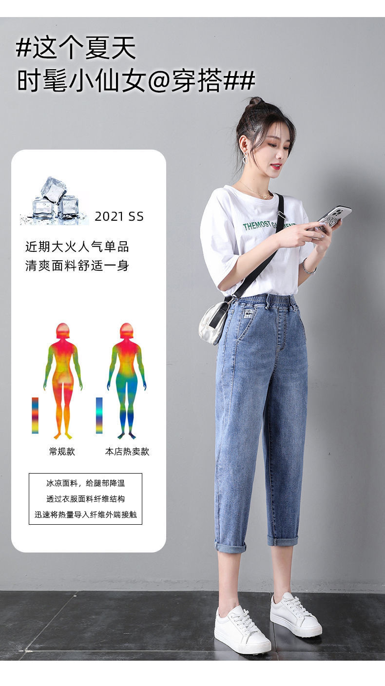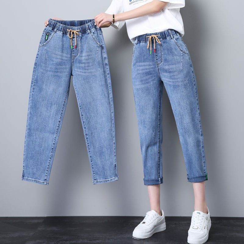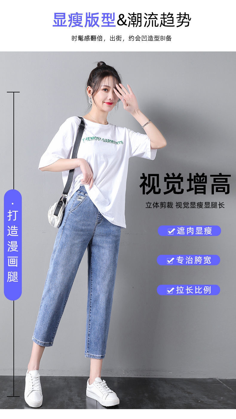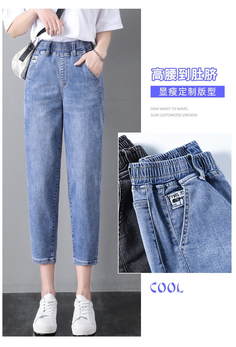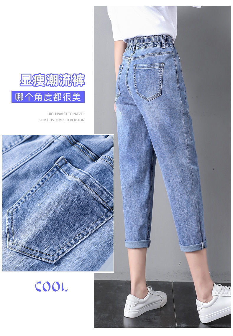 자른 청바지 여자 여름 얇은 2024 새로운 도착 높은 허리 느슨한 슬리밍 아빠 바지 스트레이트 하렘 바지스토어 가기