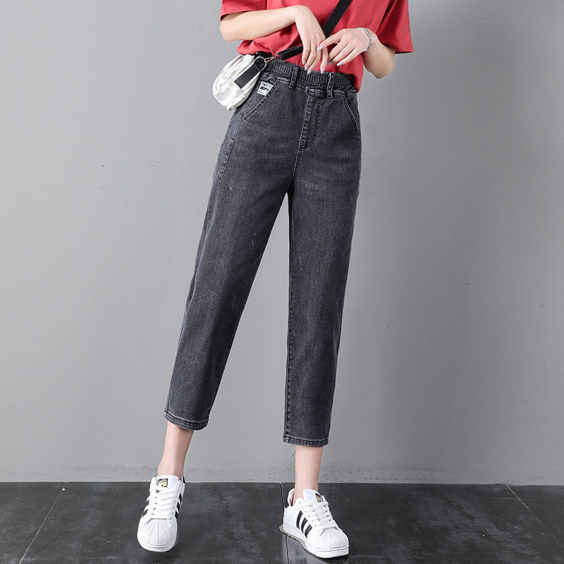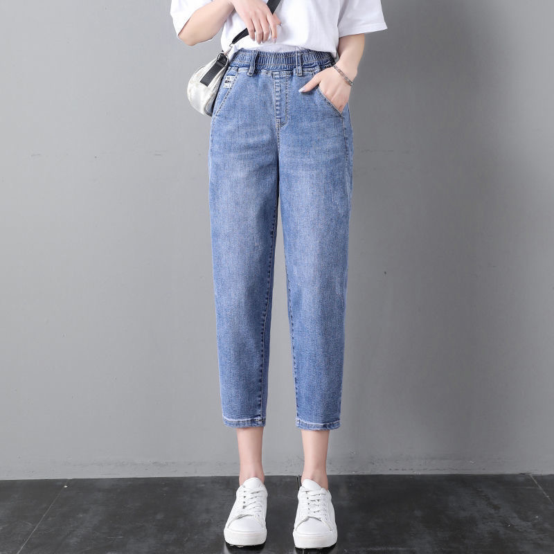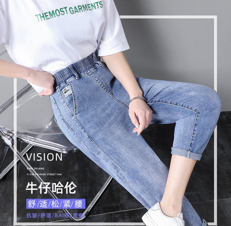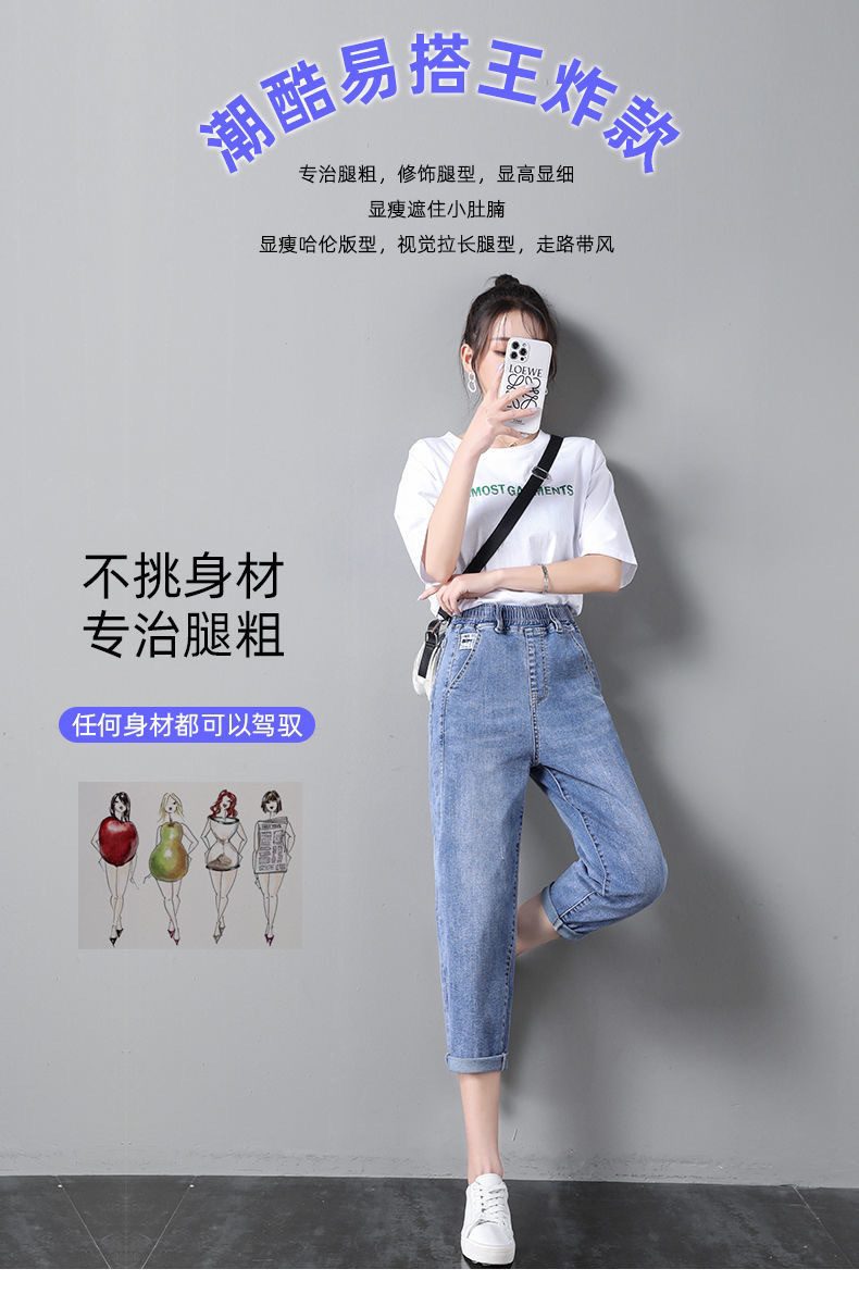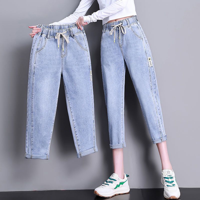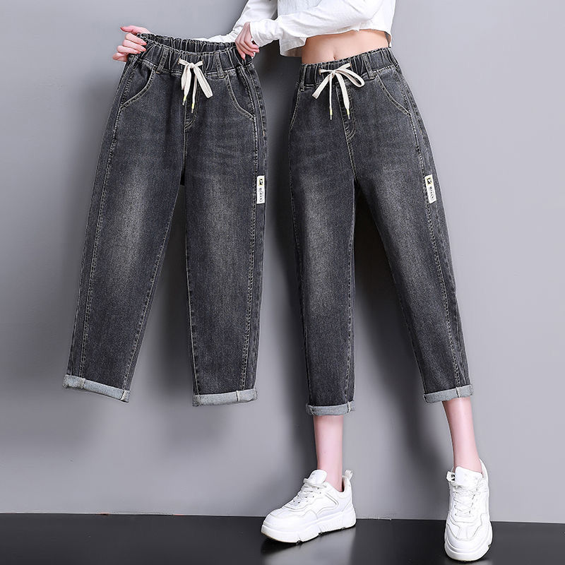 자른 청바지 여자 여름 얇은 2024 새로운 도착 높은 허리 느슨한 슬리밍 아빠 바지 스트레이트 하렘 바지스토어 가기