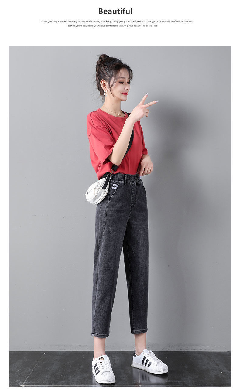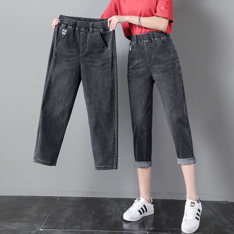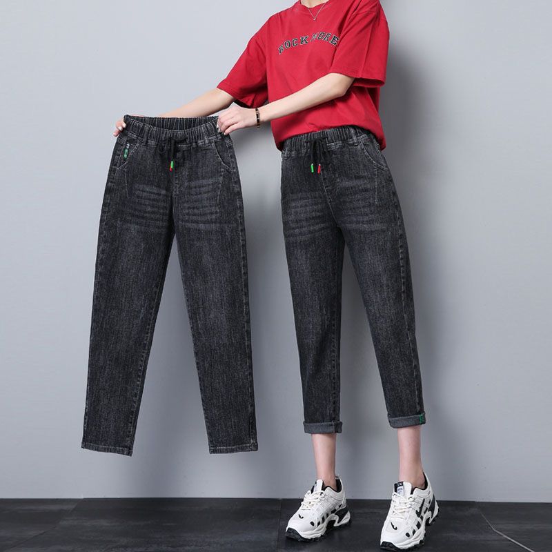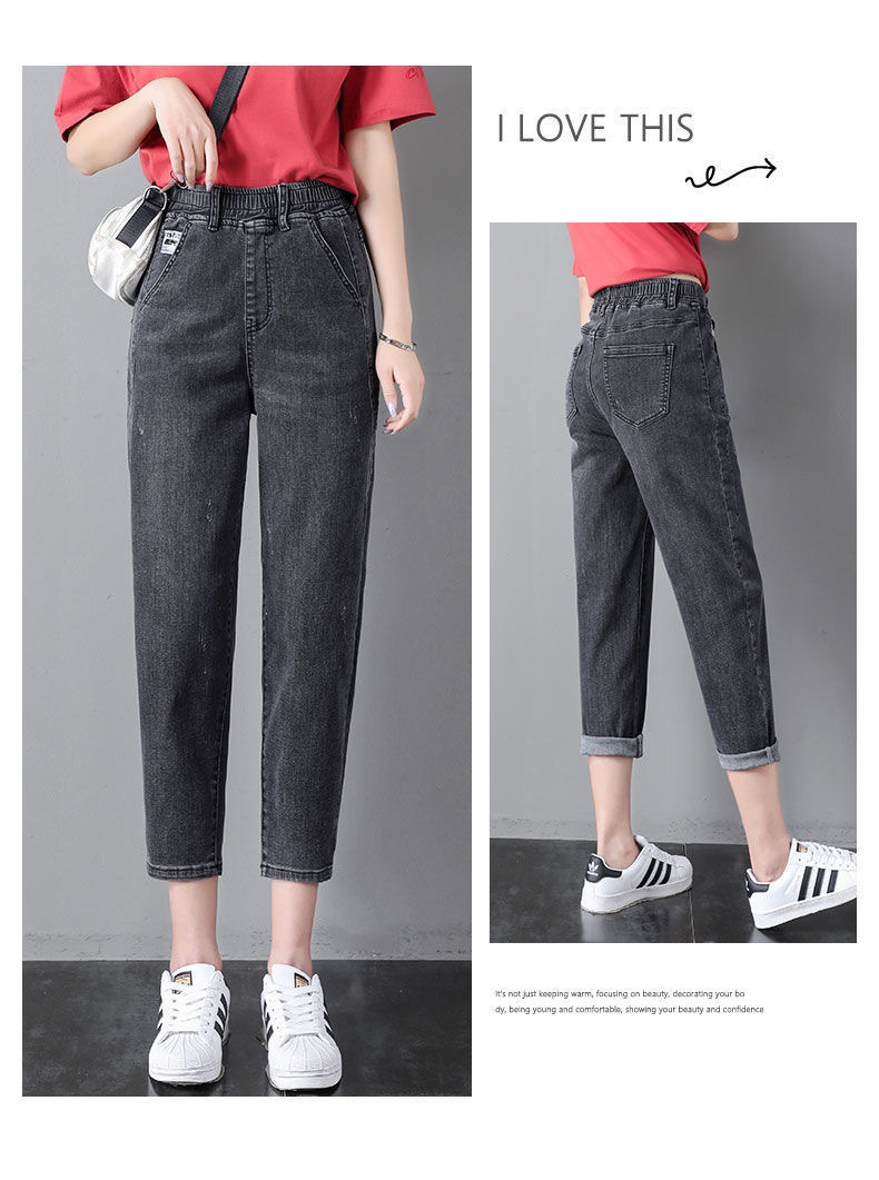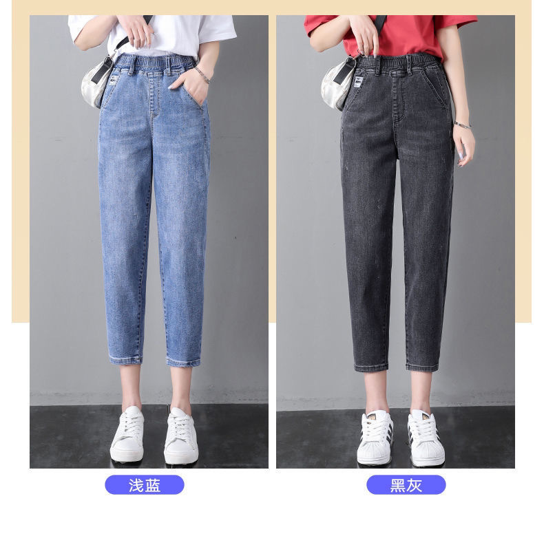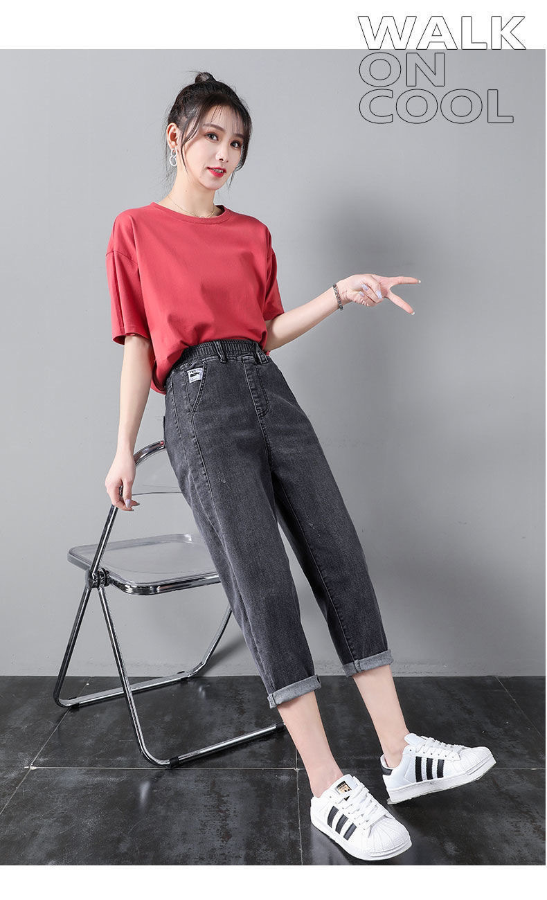 자른 청바지 여자 여름 얇은 2024 새로운 도착 높은 허리 느슨한 슬리밍 아빠 바지 스트레이트 하렘 바지스토어 가기
