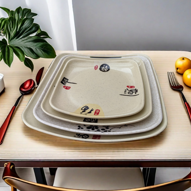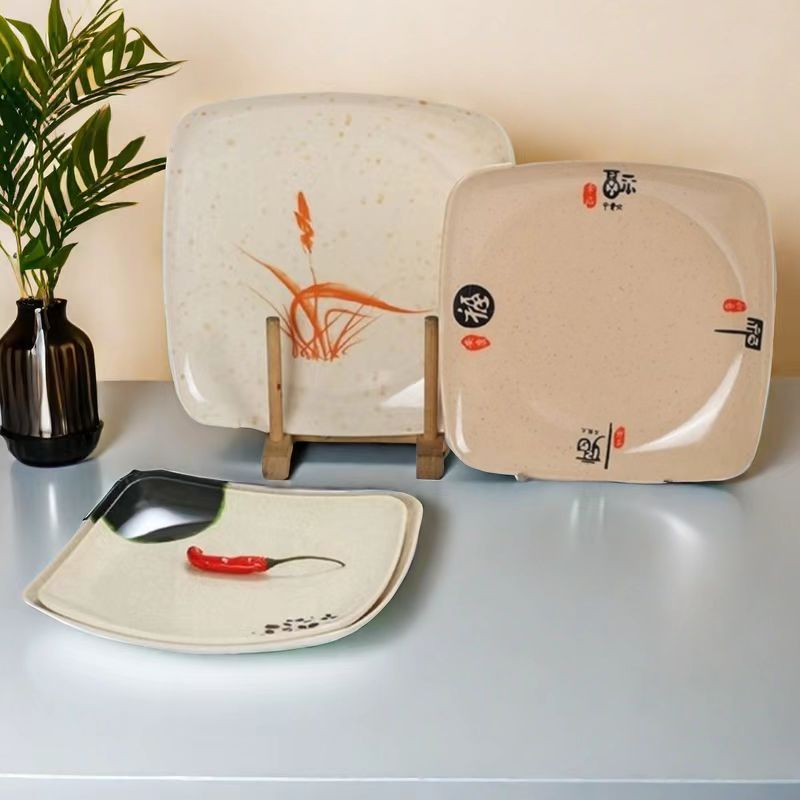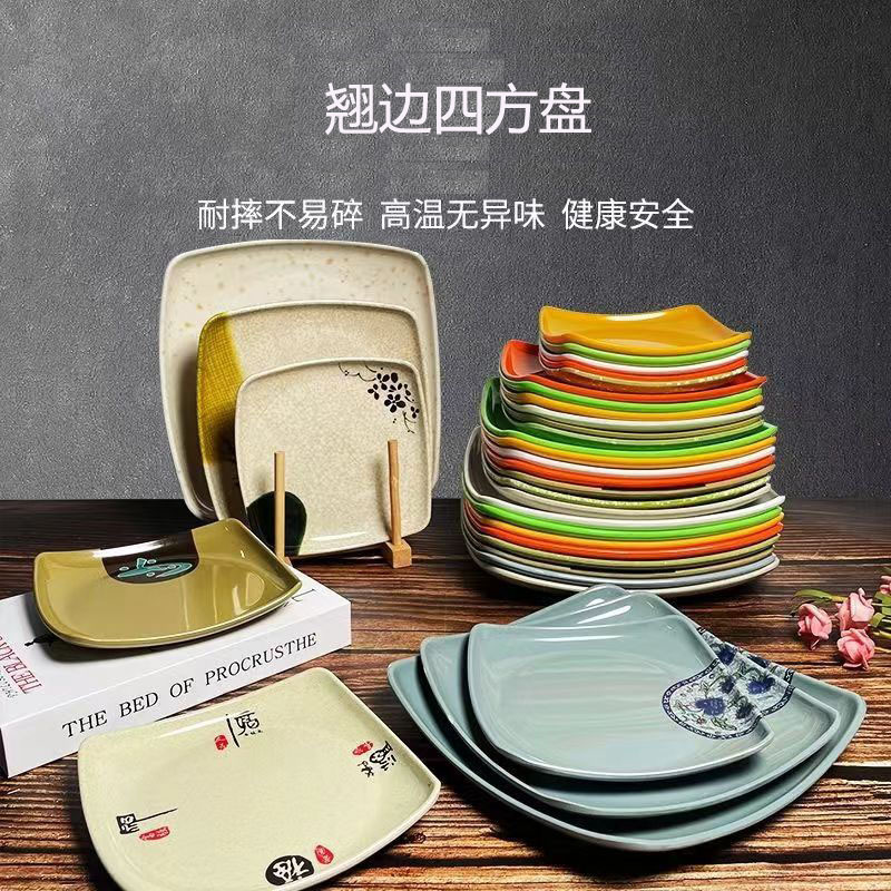 모조 세라믹 멜라민 플레이트 사각형 뒤틀린 가장자리 cocked 플레이트 사각형 둥근 접시 고기 접시 레스토랑 노점 집스토어 가기