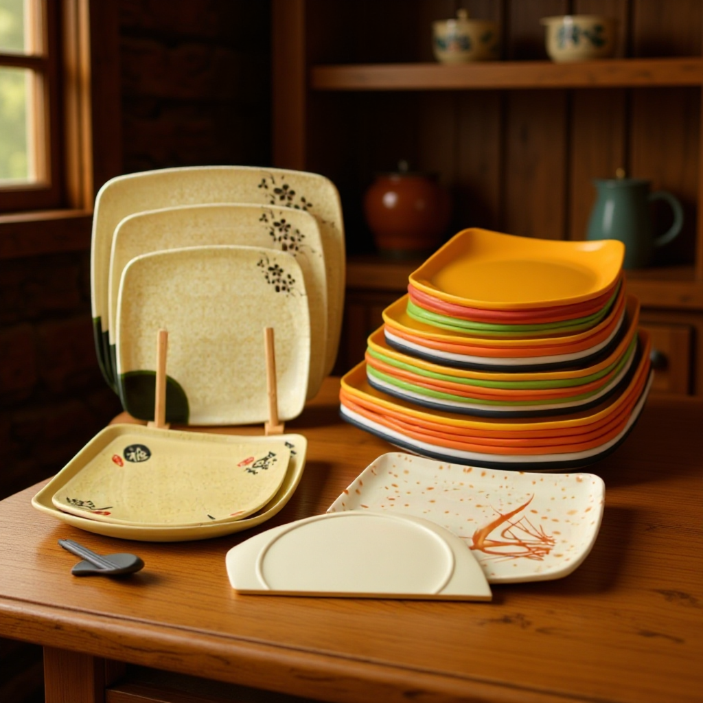 모조 세라믹 멜라민 플레이트 사각형 뒤틀린 가장자리 cocked 플레이트 사각형 둥근 접시 고기 접시 레스토랑 노점 집