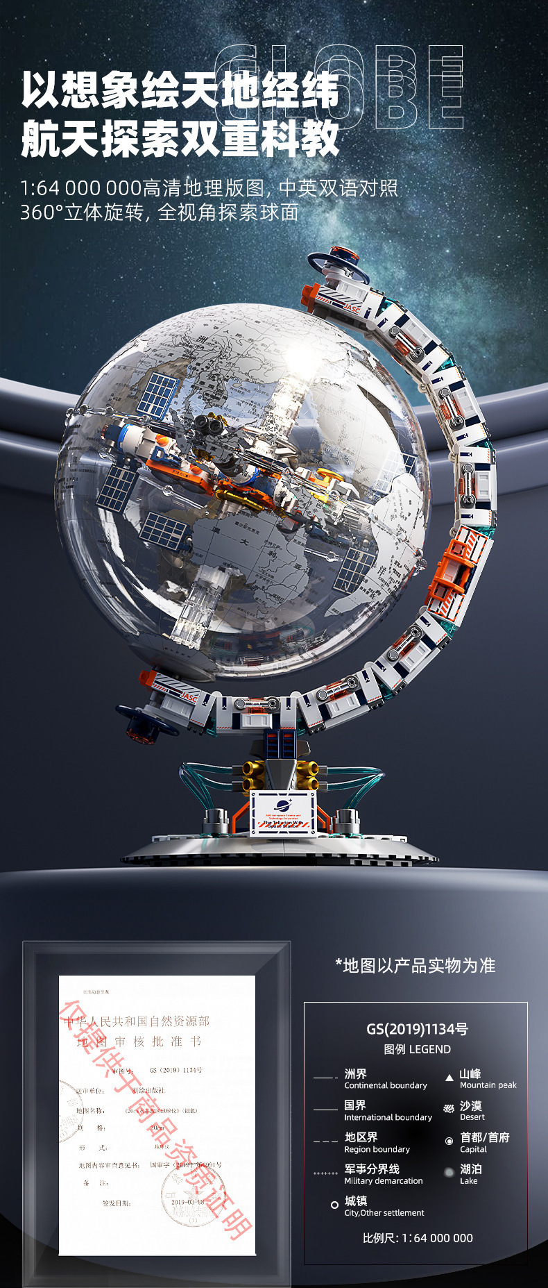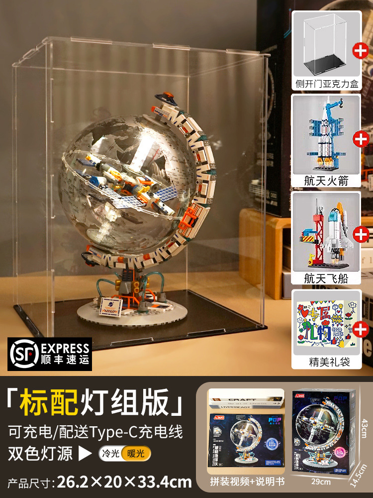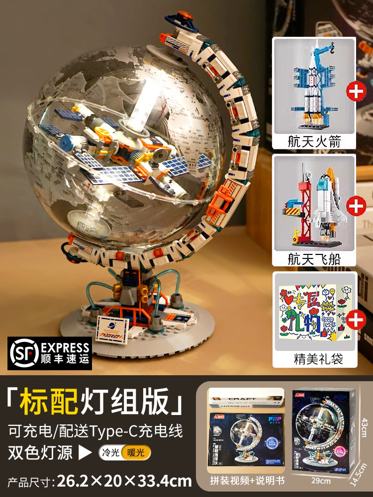 • 2색 조명 + 방진 상자 + 무료 우주 왕복선 + 로켓 + 선물 가방이 포함된 새벽 지구본 [절묘한 색상 상자]