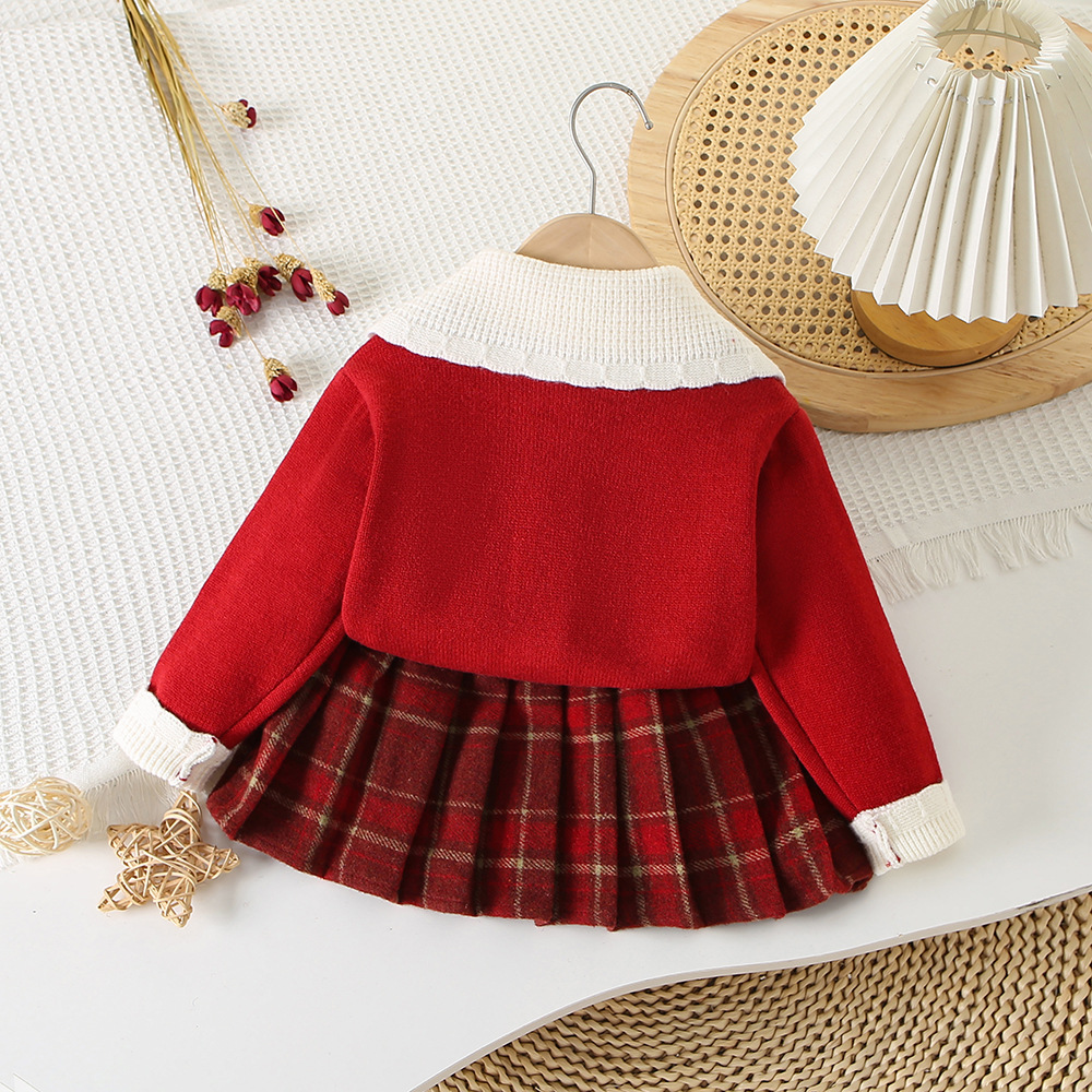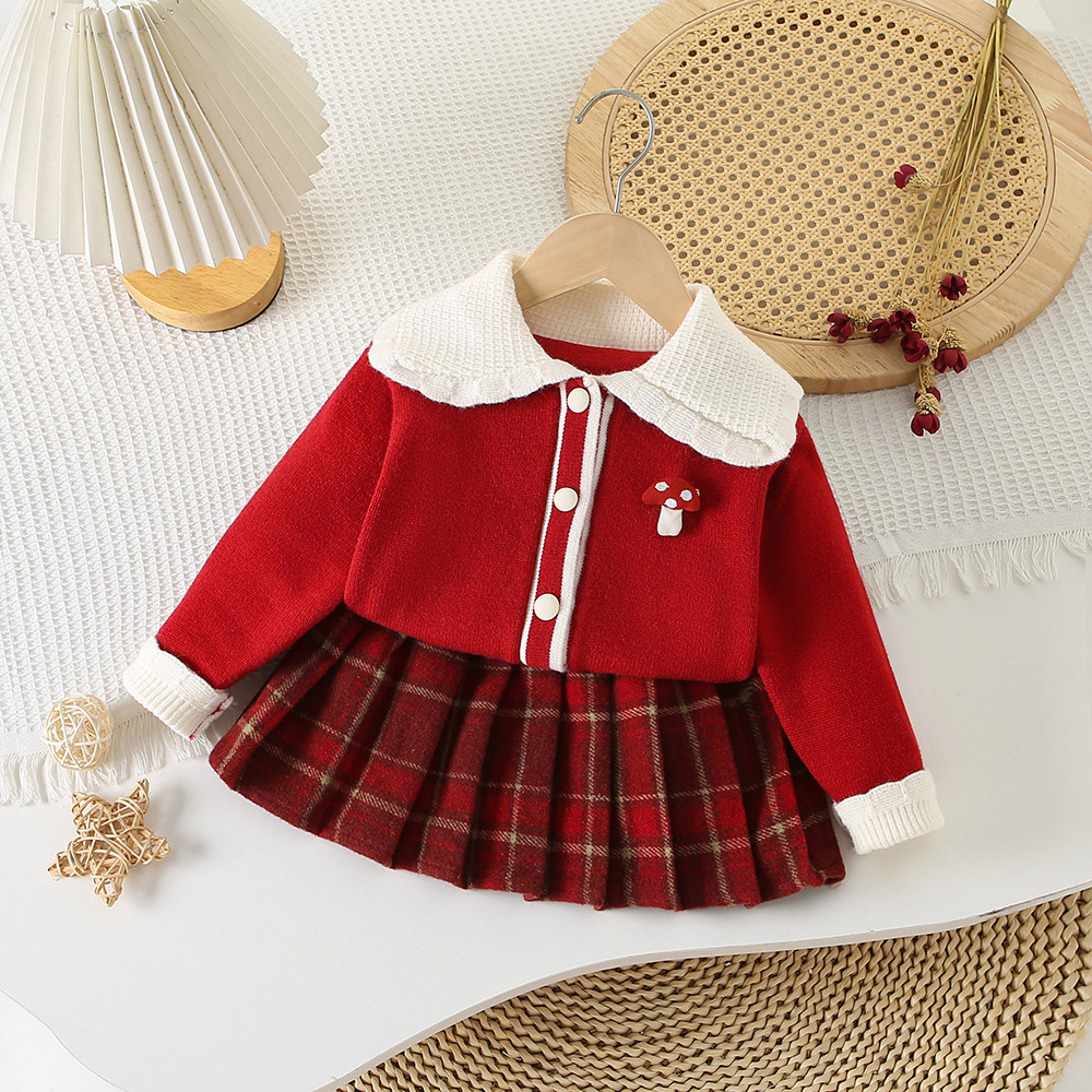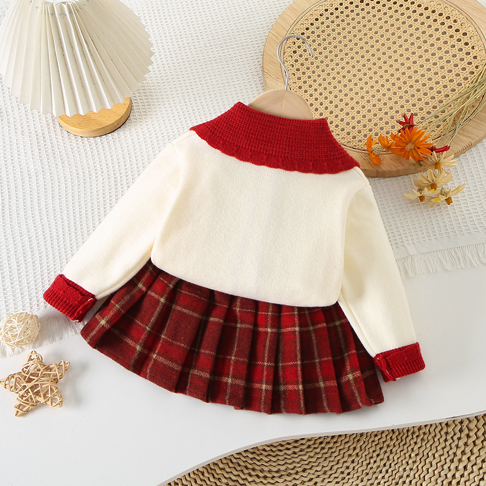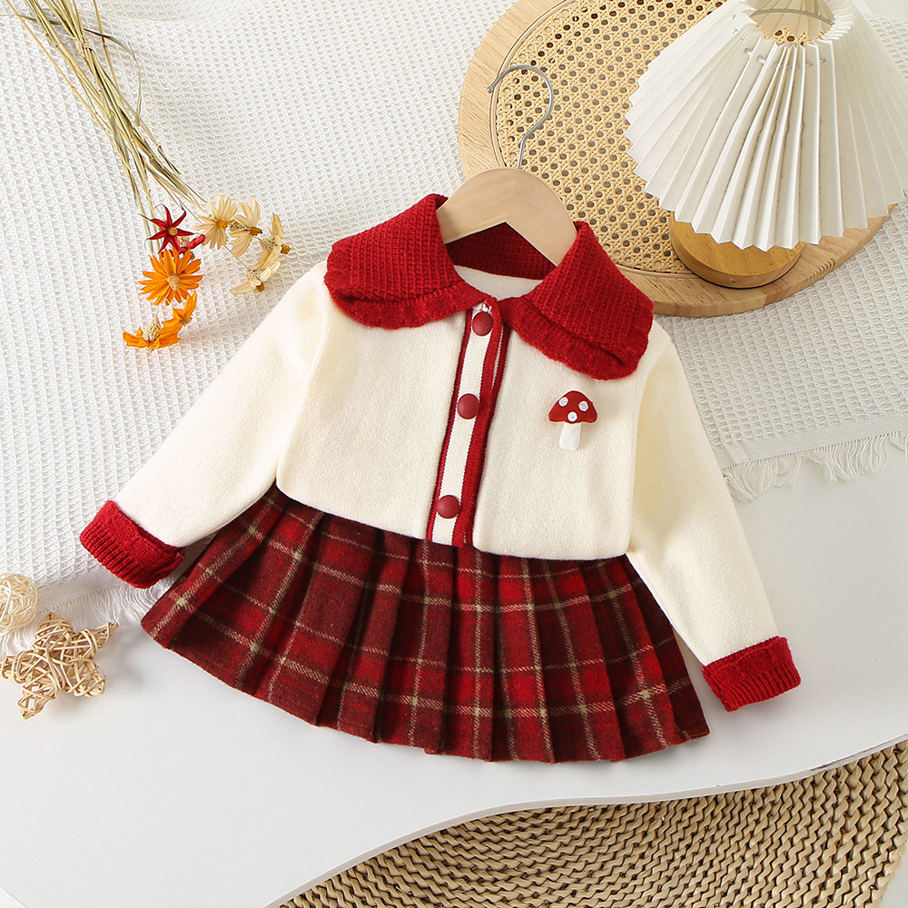 여자 치마 가을과 겨울 어린이 치마 어린이 주름 치마 양모 짧은 치마 소녀 봄과 가을 새 세트