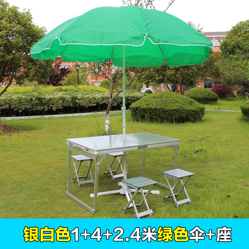 • 은백색 테이블 + 알루미늄 스툴 4개 + 녹색 우산 2.4m 개 + 좌석