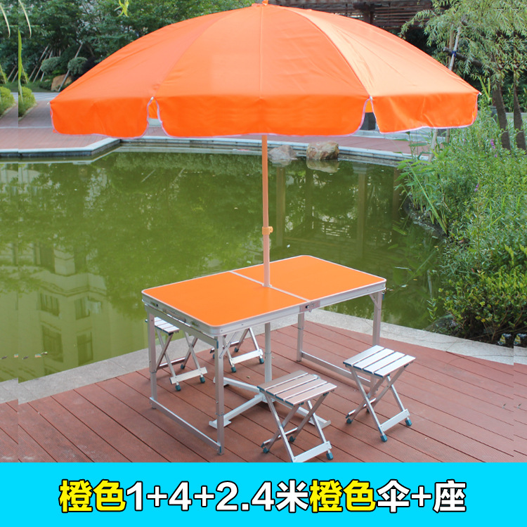 • 주황색 테이블 상판 + 4 알루미늄 스툴 + 2.4m 주황색 우산 + 좌석