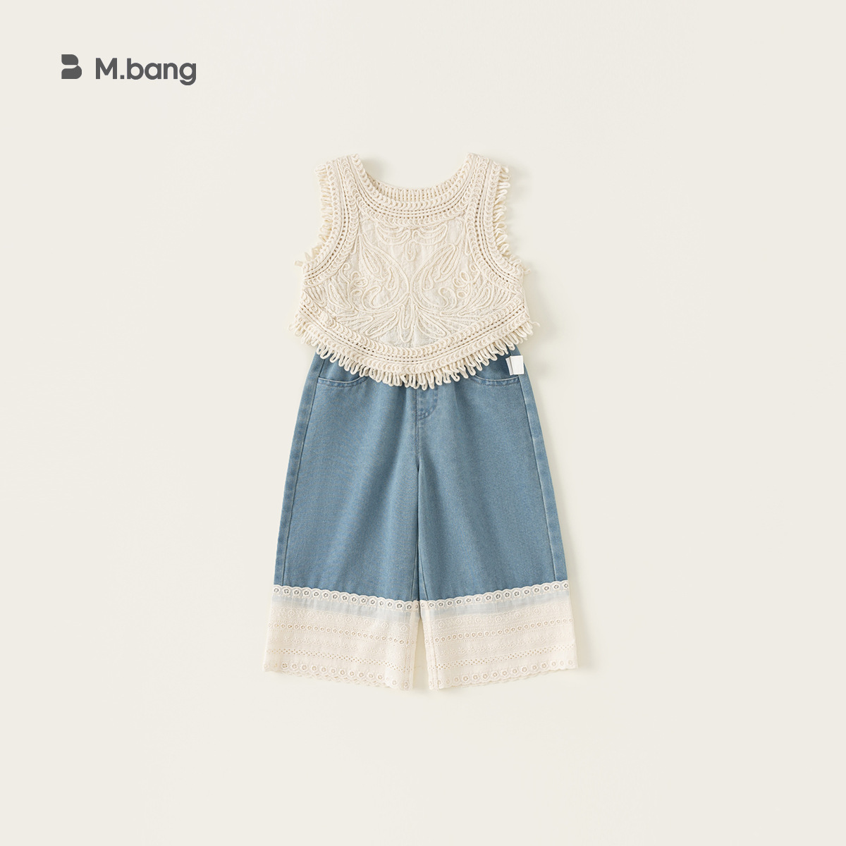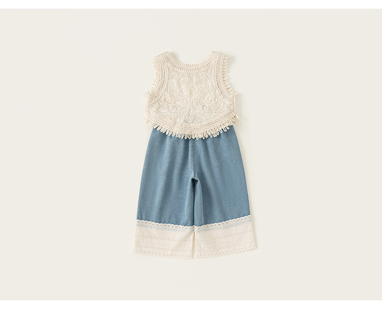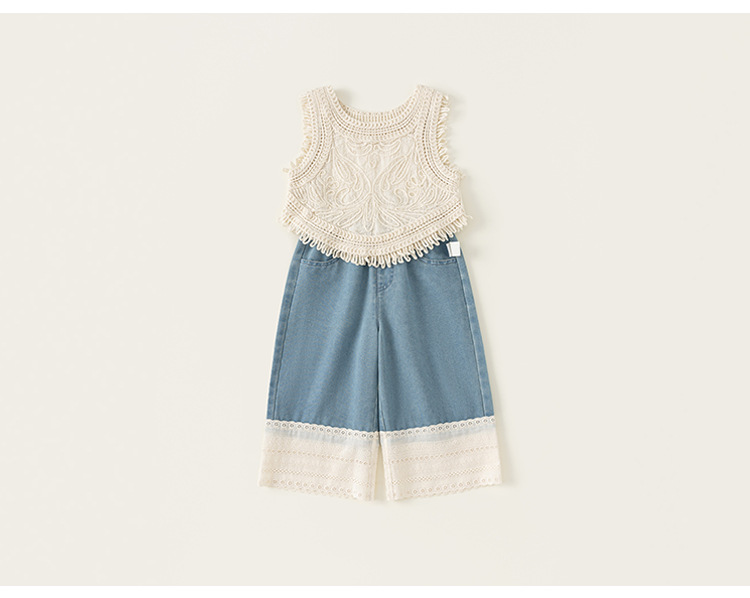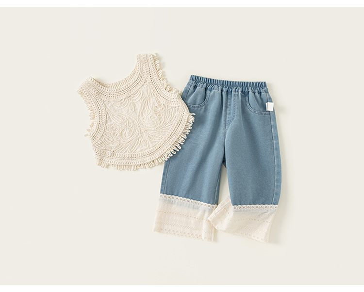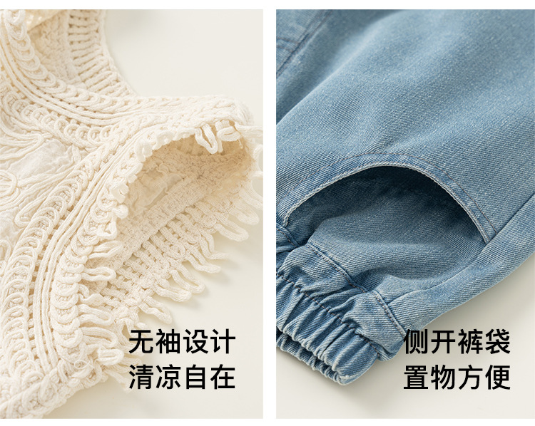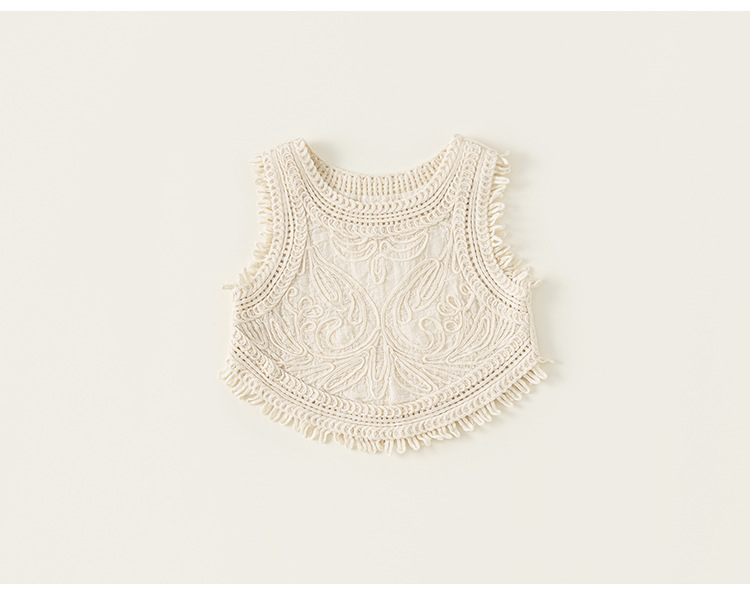 Youbao 아동복 한국어 버전 휴가 여름 소녀 민소매 조끼 아동용 니트 조끼 중공 탑 얇은 겉옷