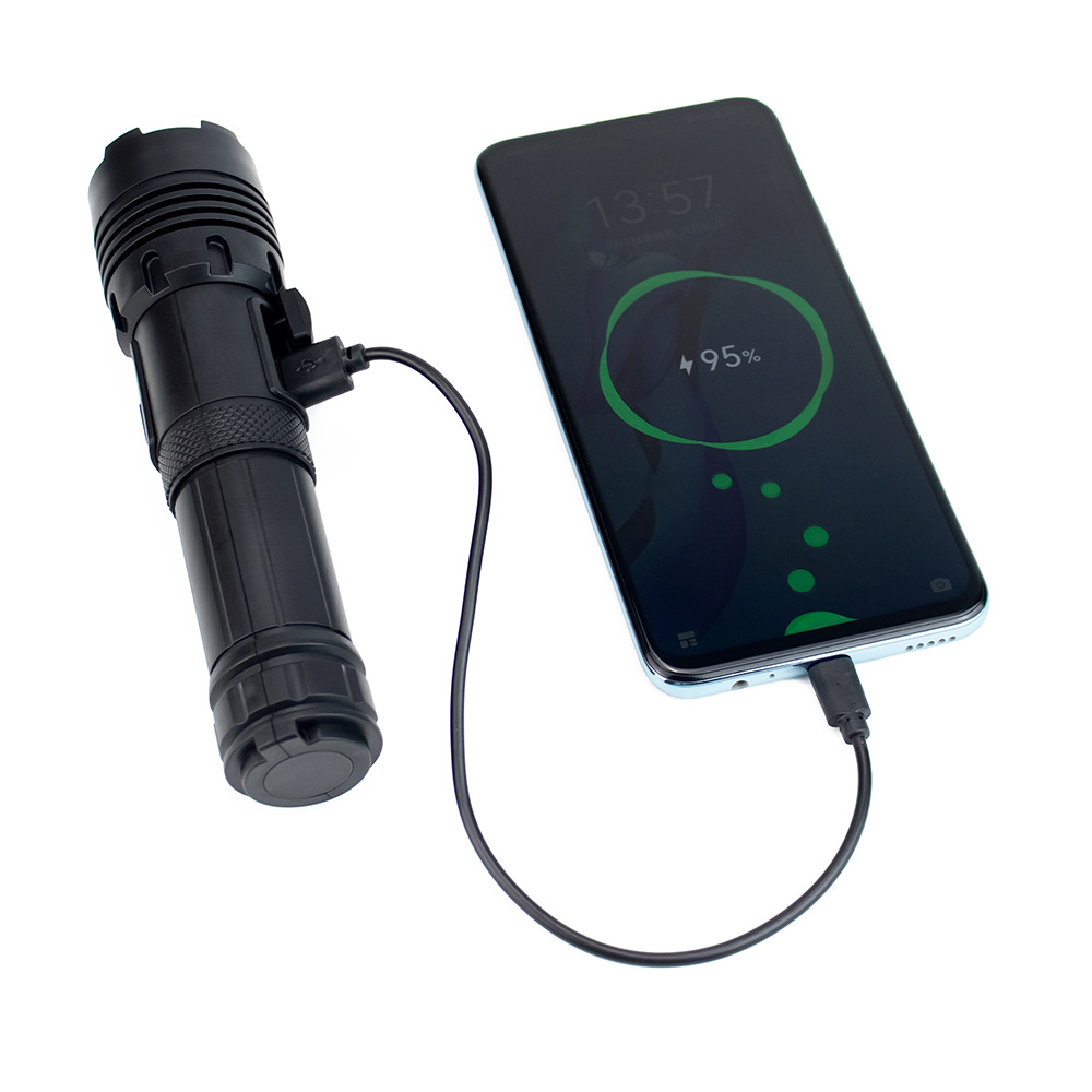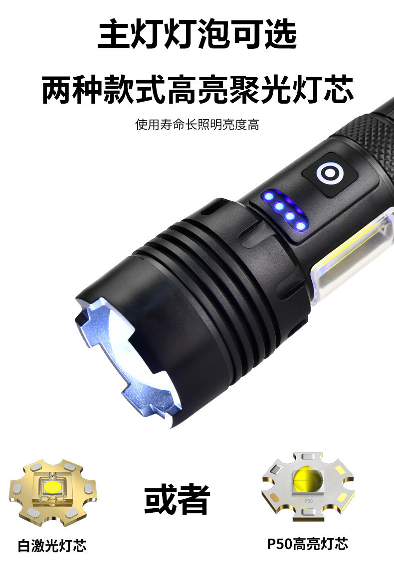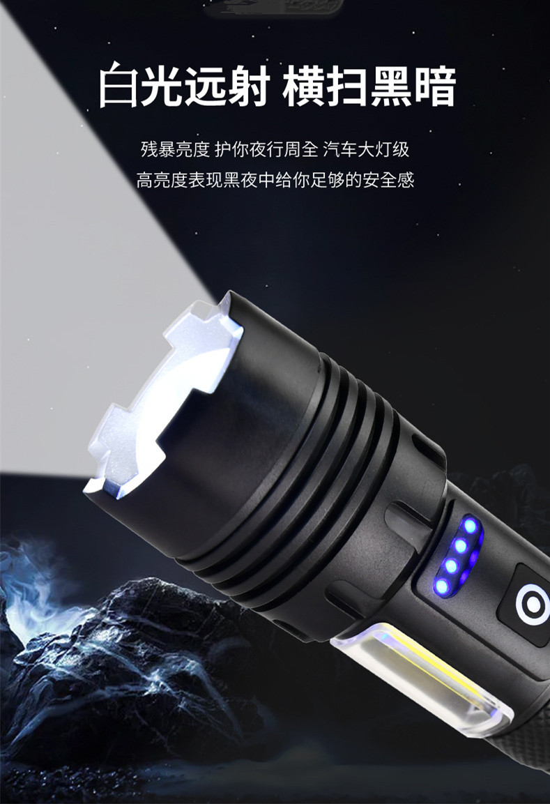 자기 방어 강한 가벼운 캠핑 야간 낚시 장거리 고출력 램프 하이킹 충전 빨간불 경고 플라스틱 강한 빛 손전등