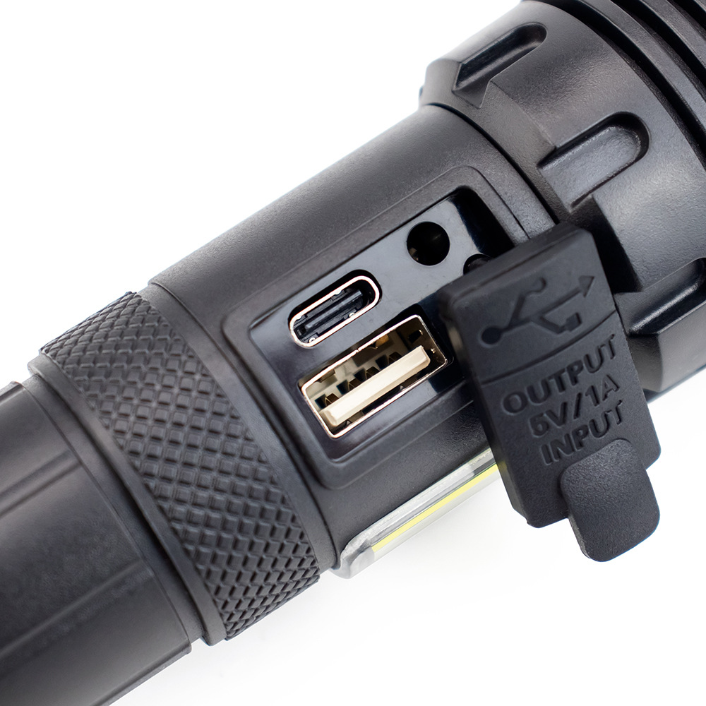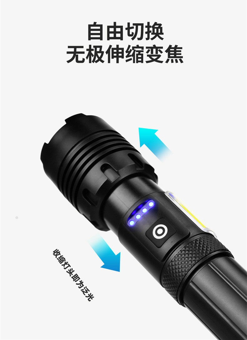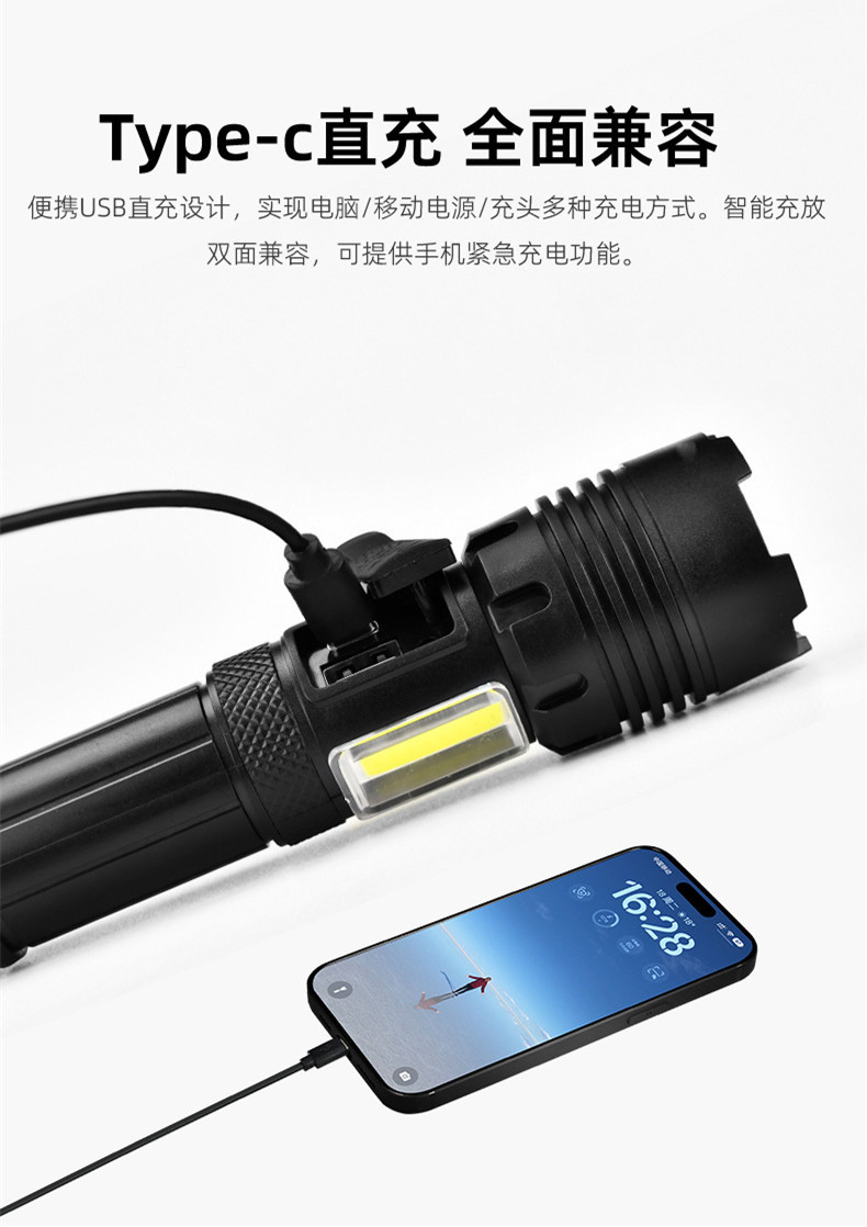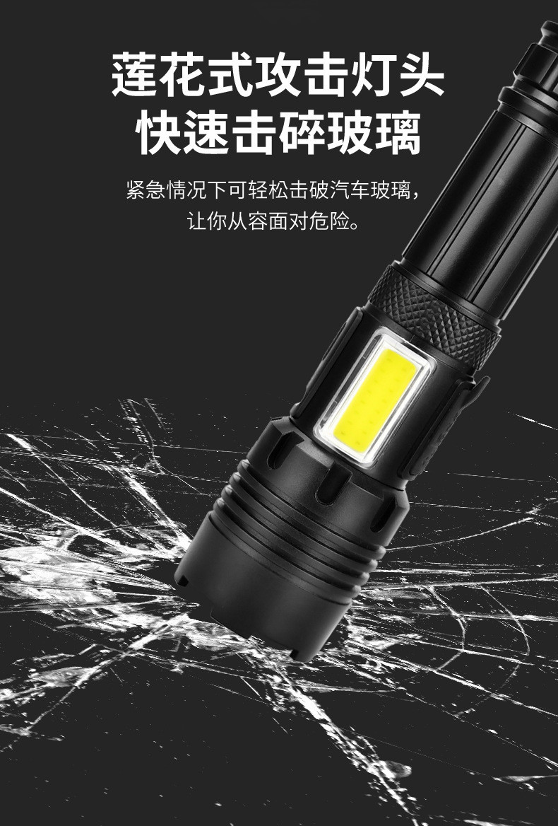 자기 방어 강한 가벼운 캠핑 야간 낚시 장거리 고출력 램프 하이킹 충전 빨간불 경고 플라스틱 강한 빛 손전등