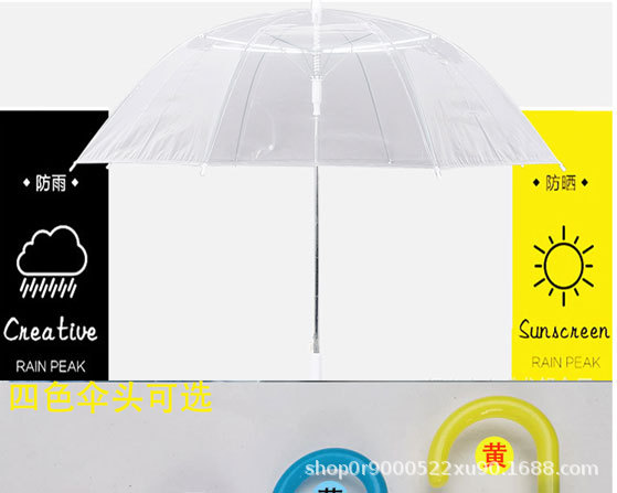 창조적 인 작은 신선한 긴 손잡이 투명 우산 컬러 스트레이트 투명 우산 자동 도매 로고 광고 선물 우산