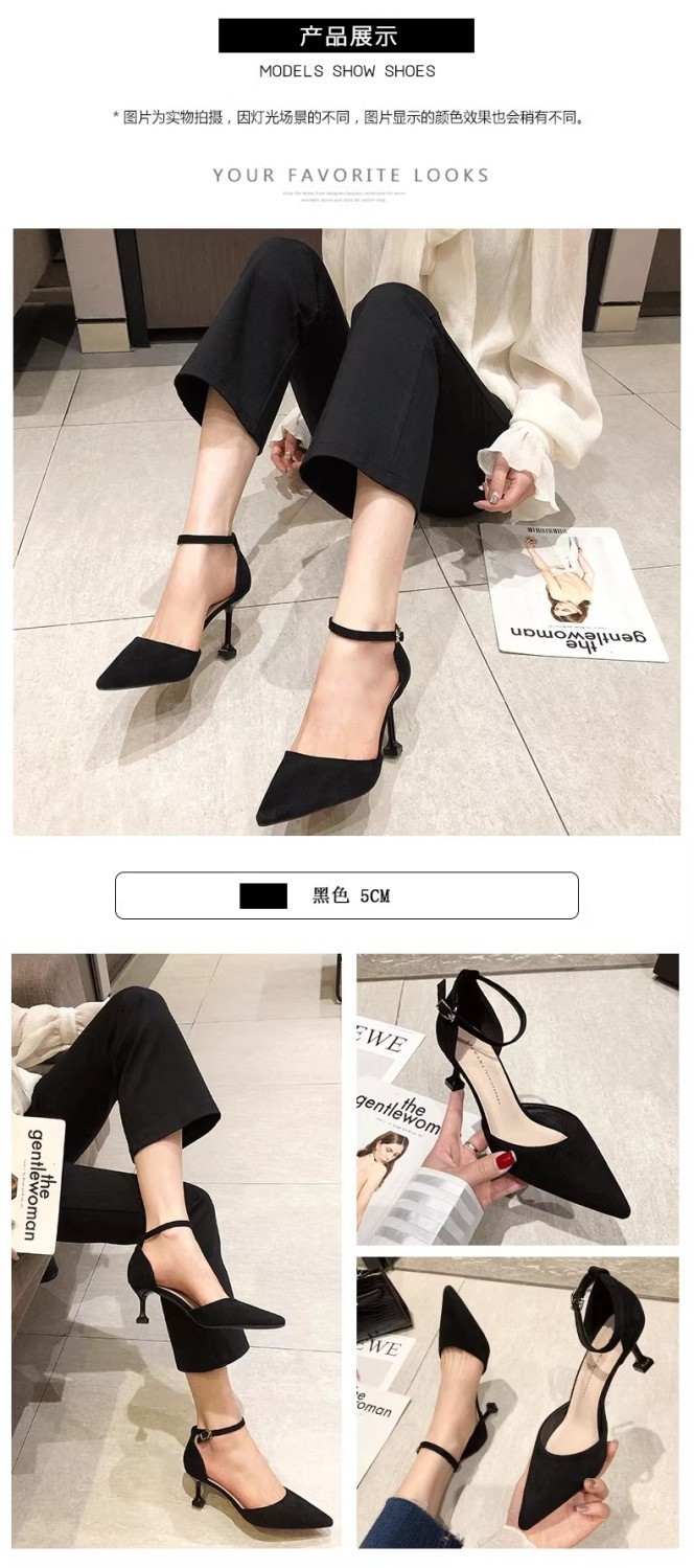 하이힐 신발 여성용 스틸레토 힐 2024 새로운 여름 블랙 프로 버클 샌들 여성용 뾰족한 소프트 슈즈스토어 가기