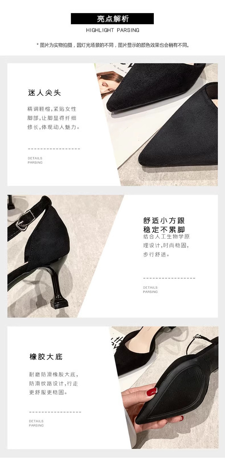 하이힐 신발 여성용 스틸레토 힐 2024 새로운 여름 블랙 프로 버클 샌들 여성용 뾰족한 소프트 슈즈