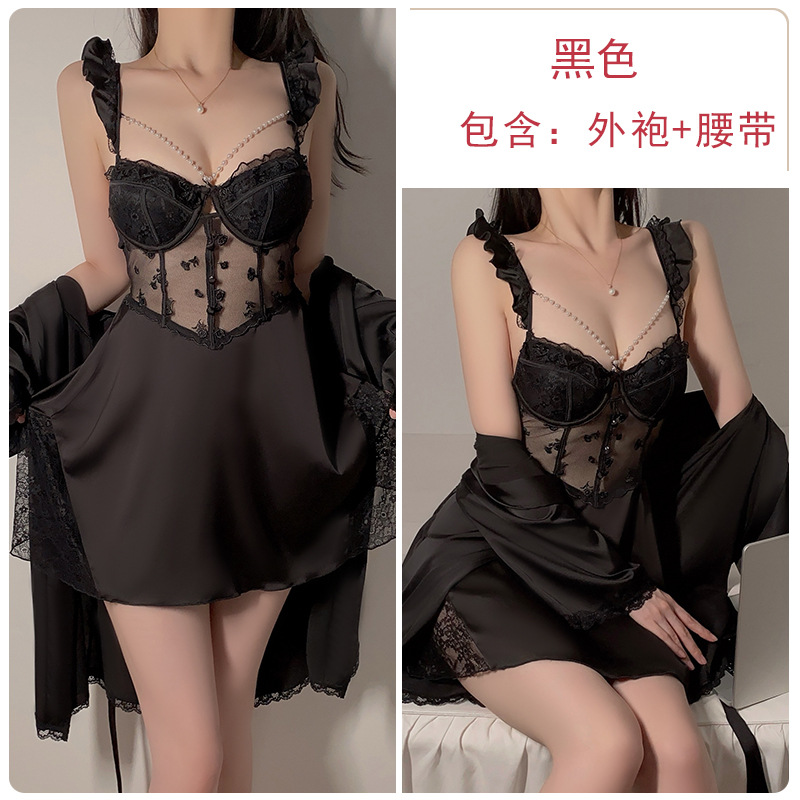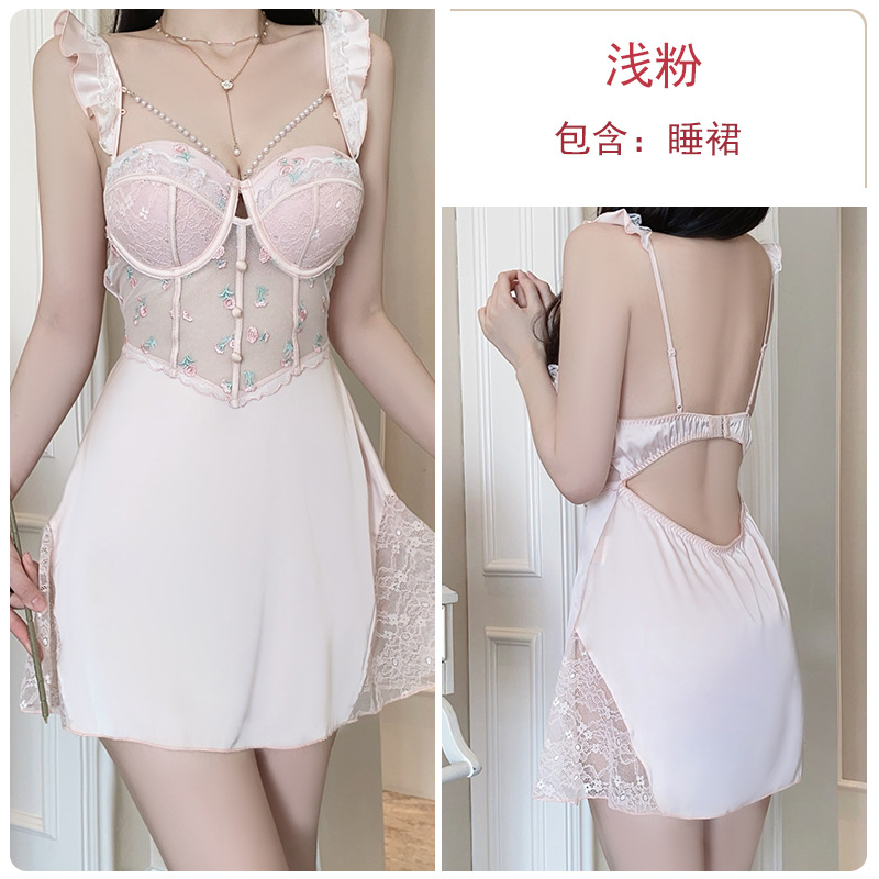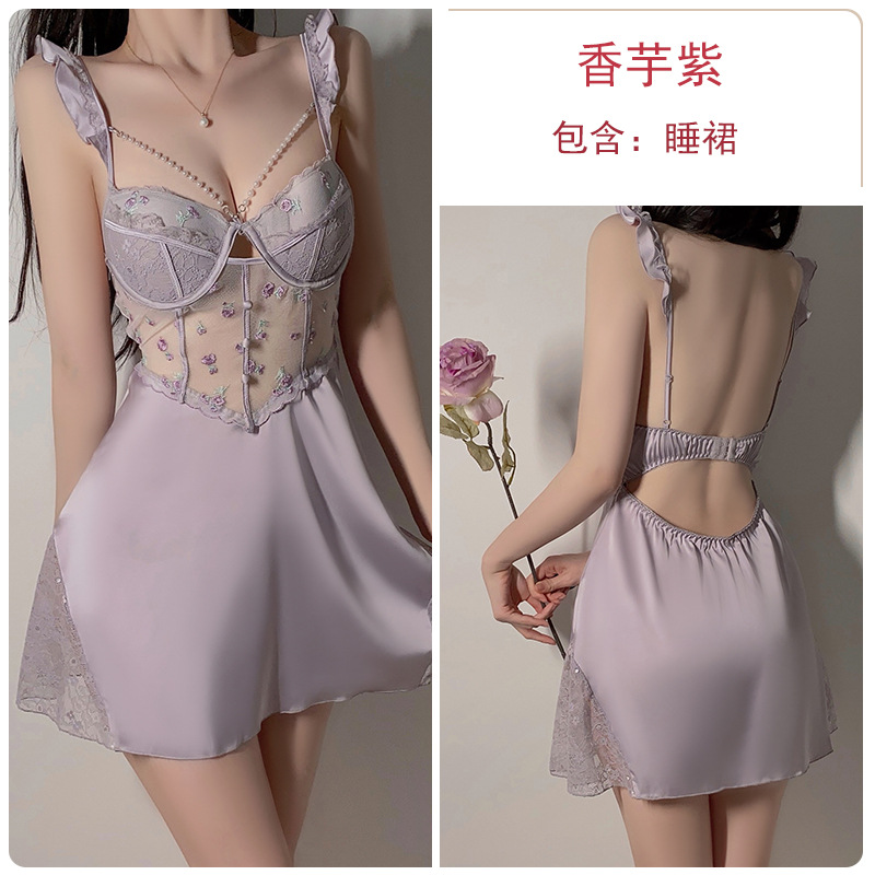 Guiruo 숙녀 속옷 섹시한 강철 반지 가슴 패드와 함께 모인 멜빵 잠옷 가정 의류 세트 4141 를 유혹하려는 순수한 욕망