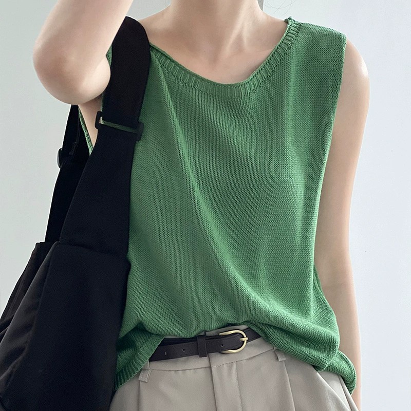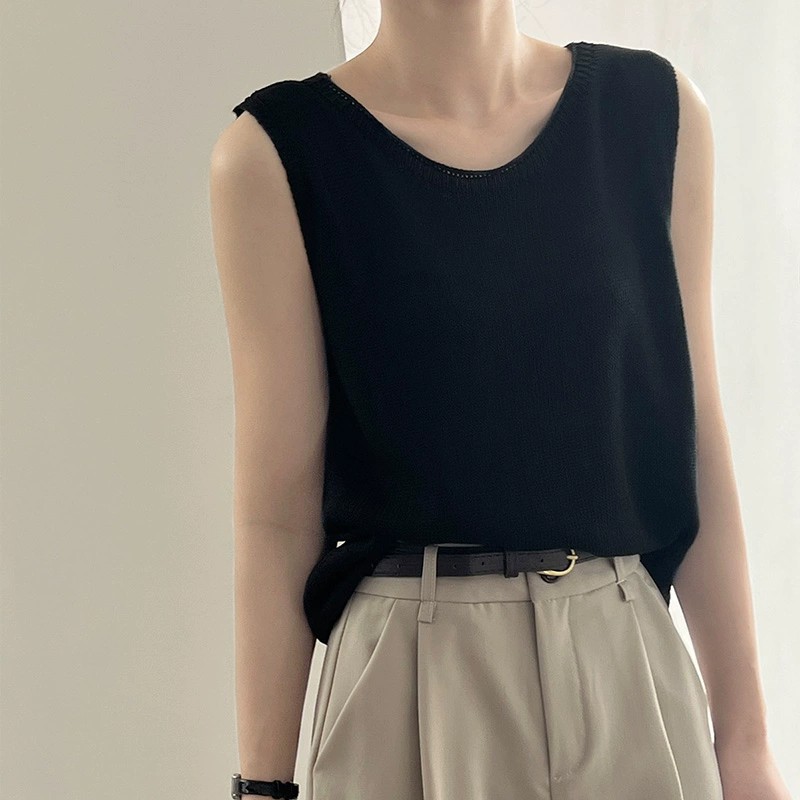 벽 균열 추천! 그레이트 웨어 ~ 텐셀 리넨 니트 조끼 여성 민소매 슬링 아이스 실크 탑 여름스토어 가기