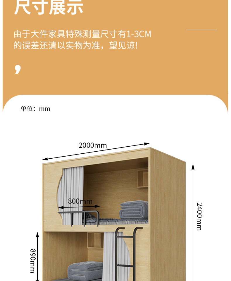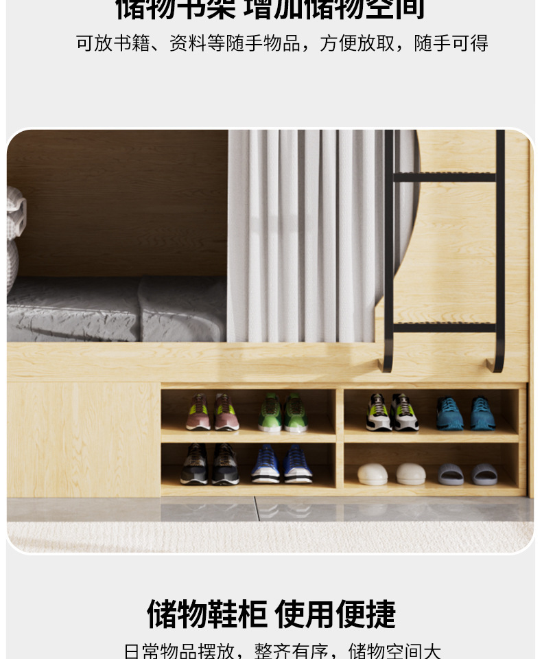 학생 아파트 침대 모든 것을 포함하는 벙크 침대 공간 캡슐 침대 호텔 홈스테이 상자 침대 나무 높은 낮은 침대스토어 가기