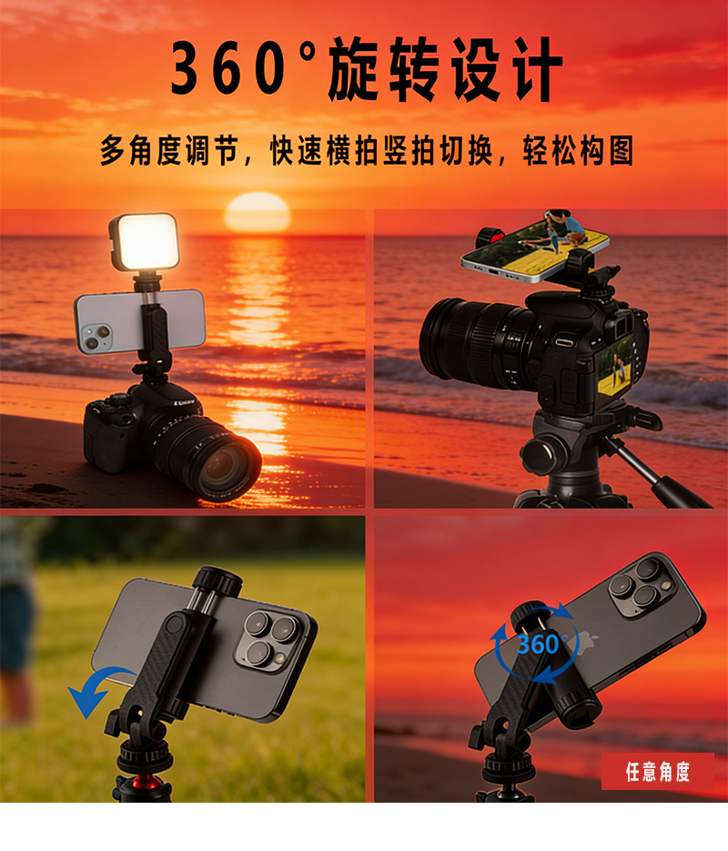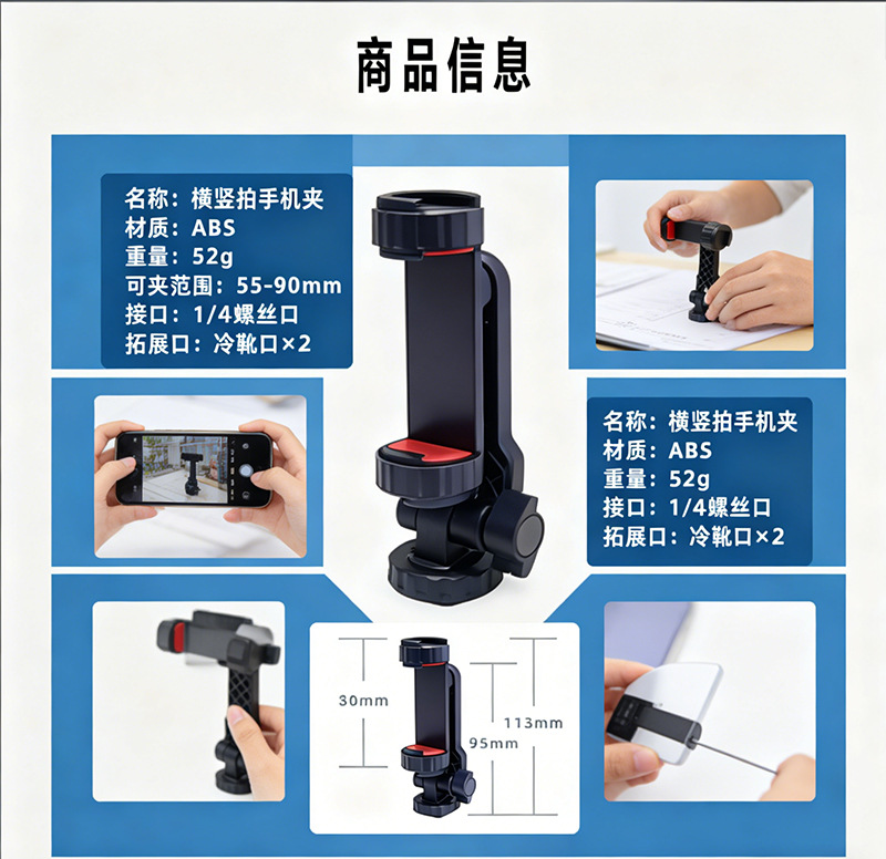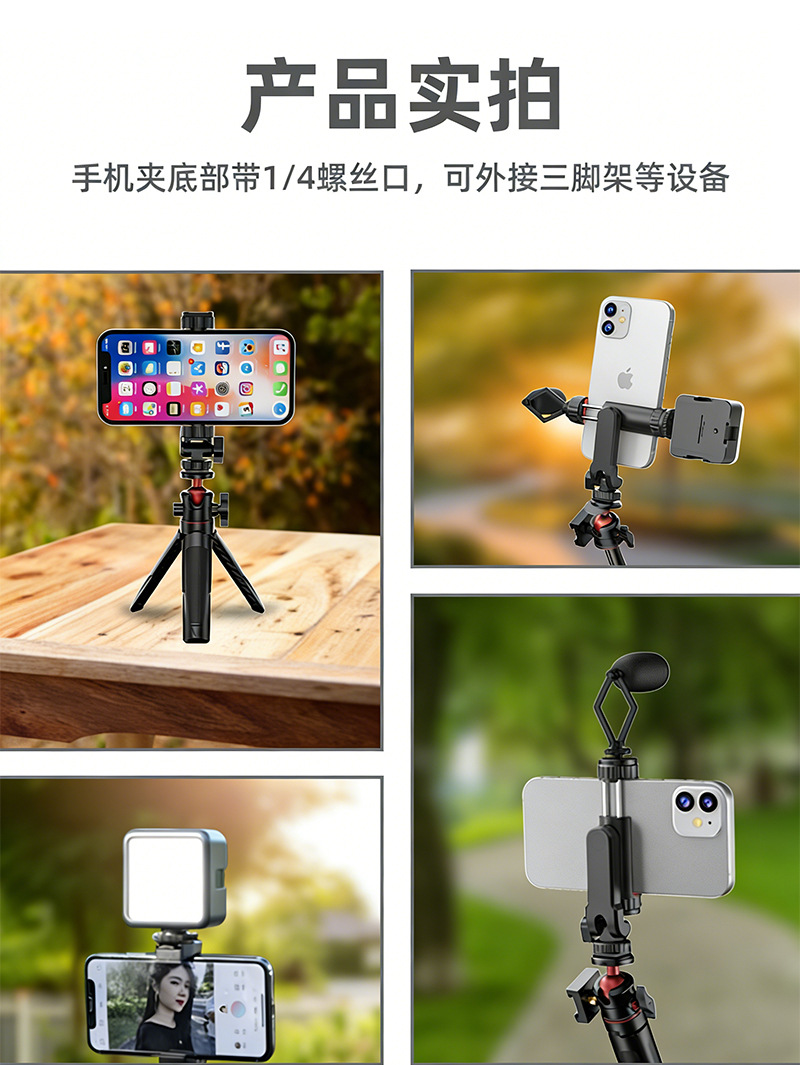 범용 회전 수평 및 수직 휴대 전화 클립 다기능 휴대 전화 액세서리 모니터 채우기 가벼운 삼각대 클립 도매