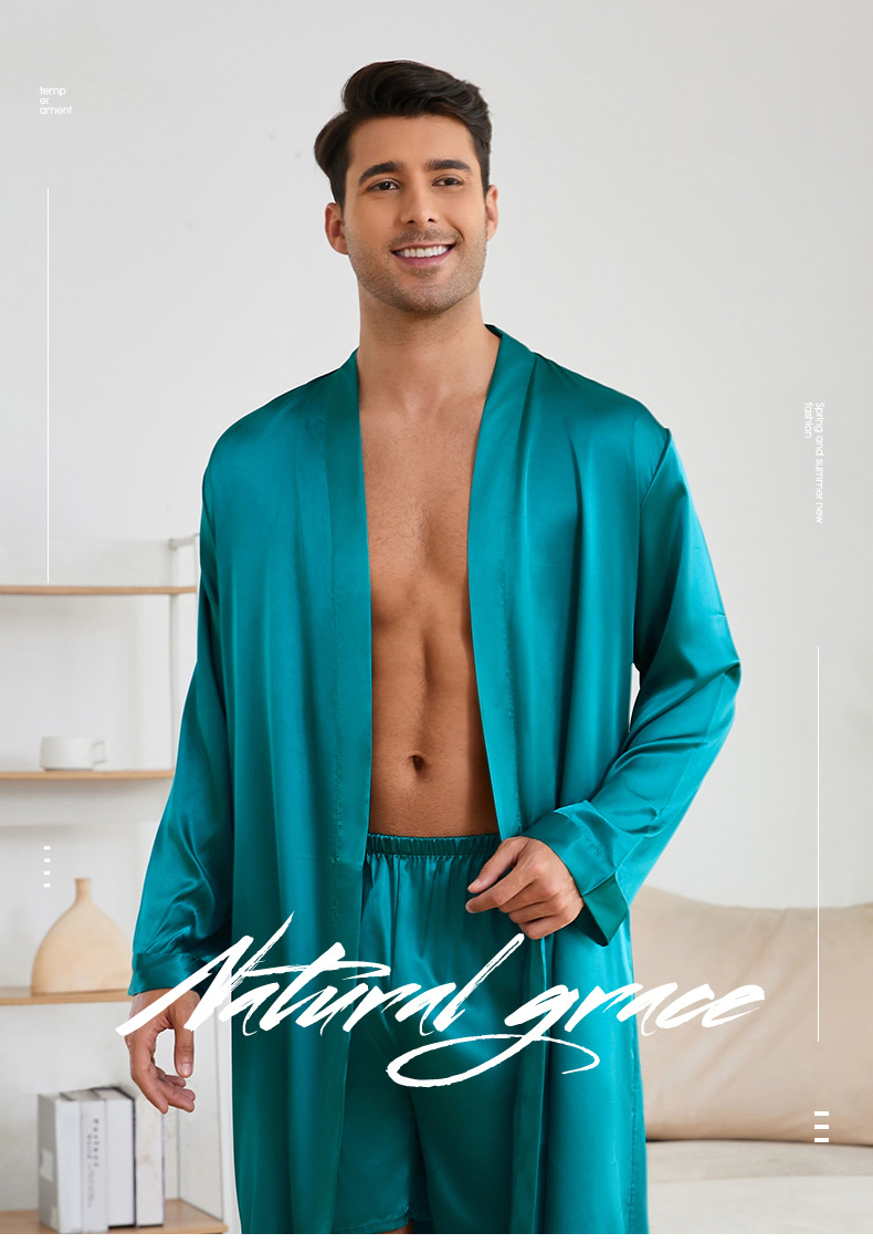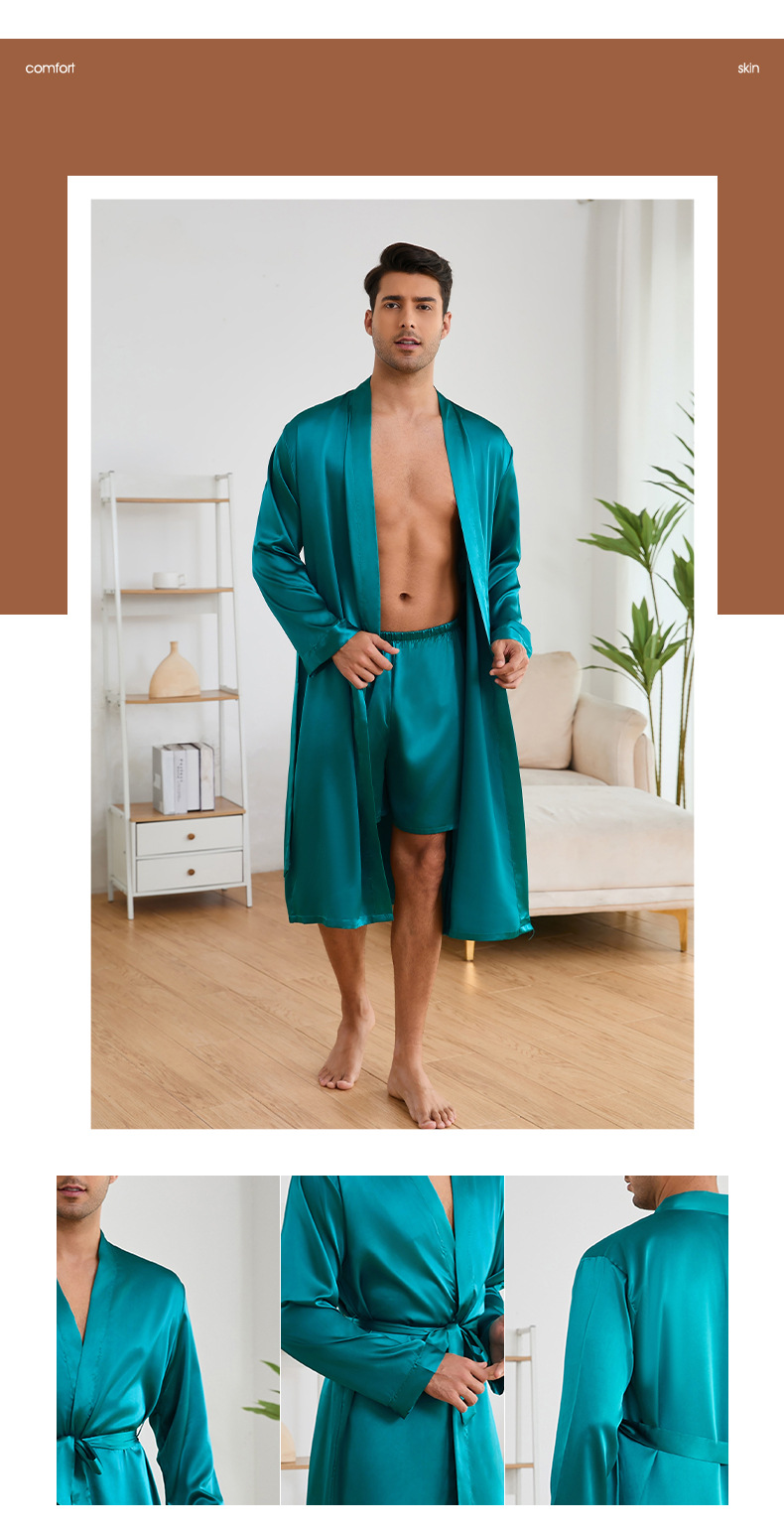 야오 팅 국경 간 남성 나이트 가운 반바지 세트 단색 홈 옷 목욕 가운 반바지 세트 얇은 파자마 TZ3194스토어 가기