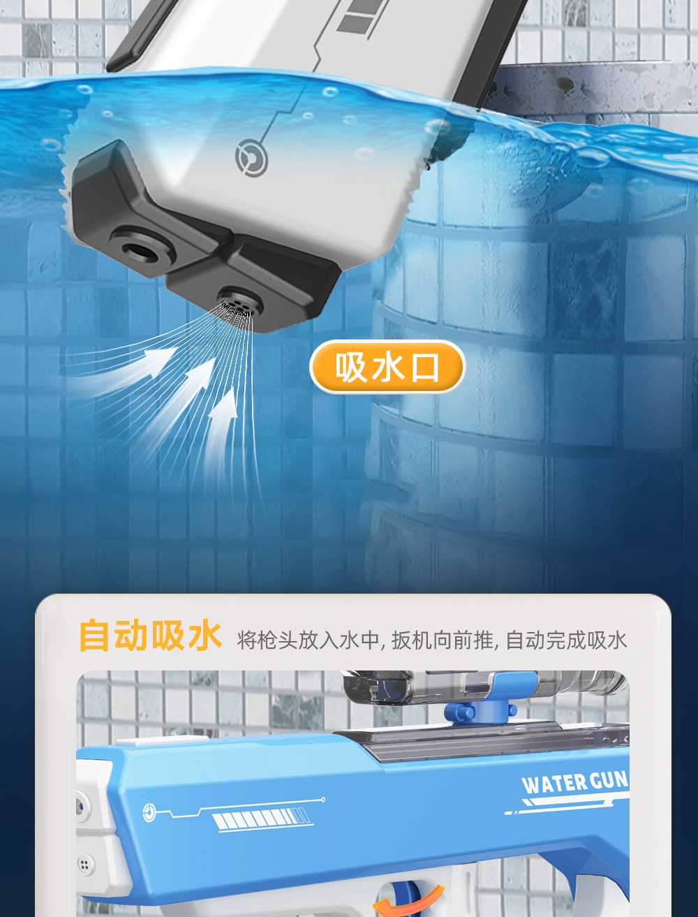 • 블루 [더블 미러] 자동 물 흡수 전기 물총