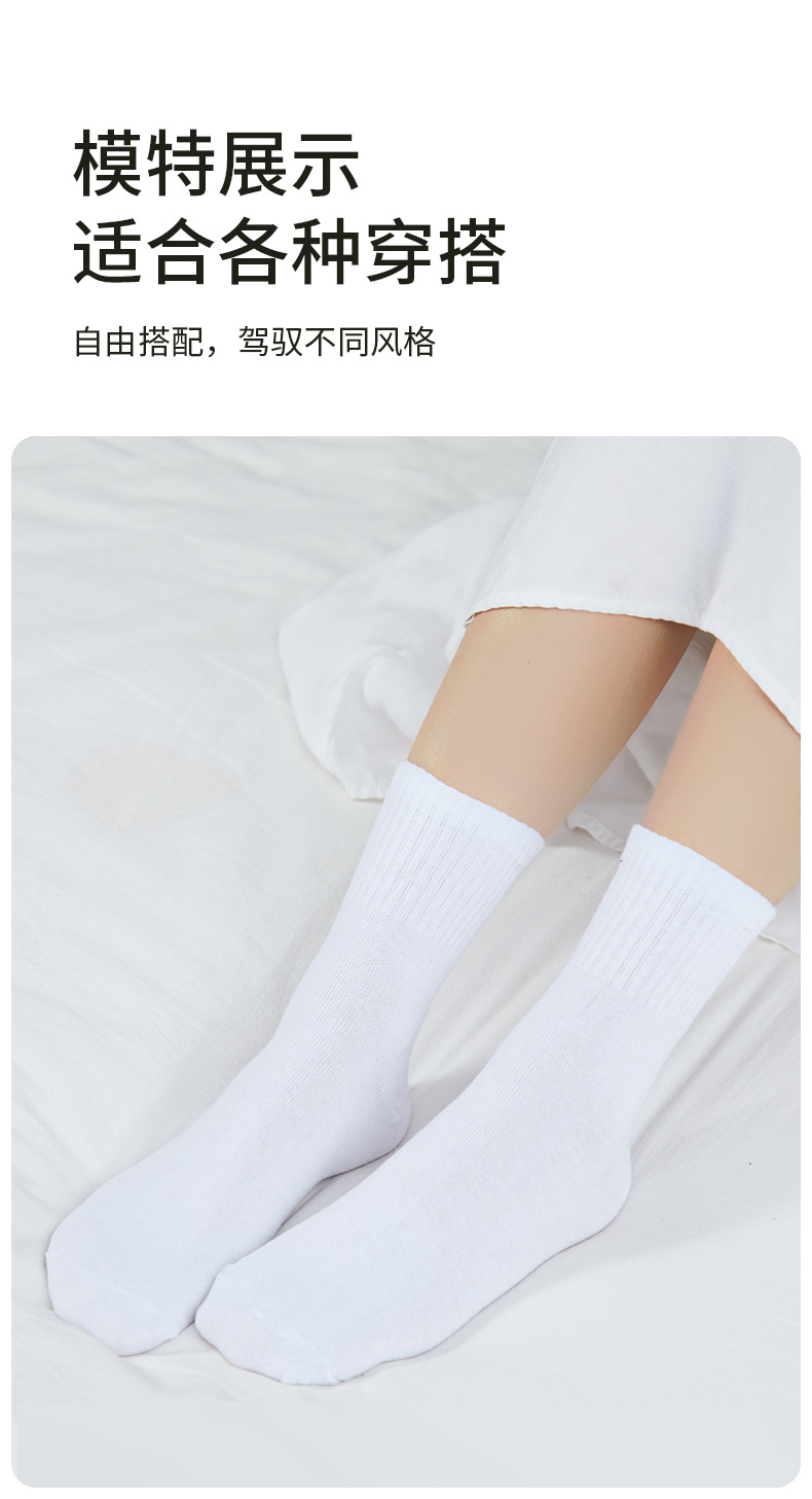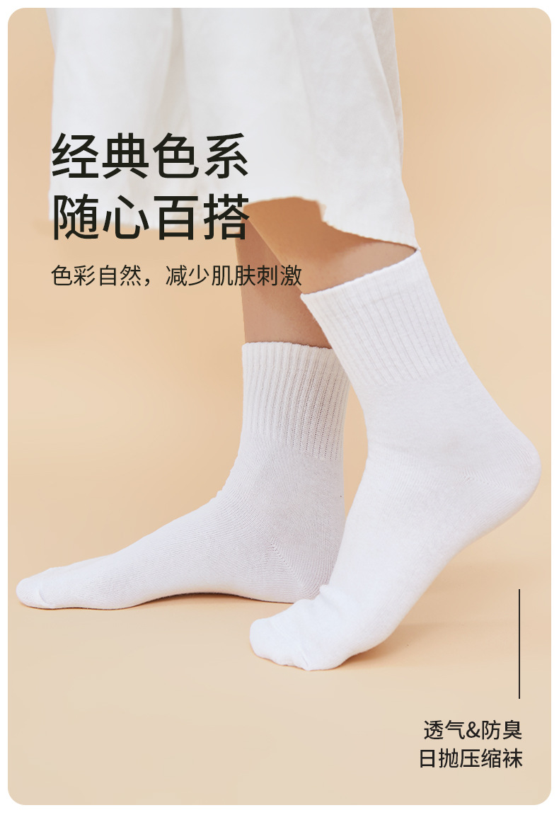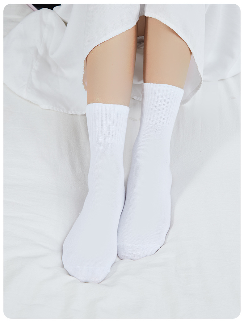 • 7A 항균 양말 - 성인용 흰색 중간 길이 - 5켤레