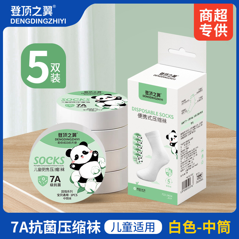 • 7A 항균 양말 - 아동용 흰색 중간 튜브 - 5켤레