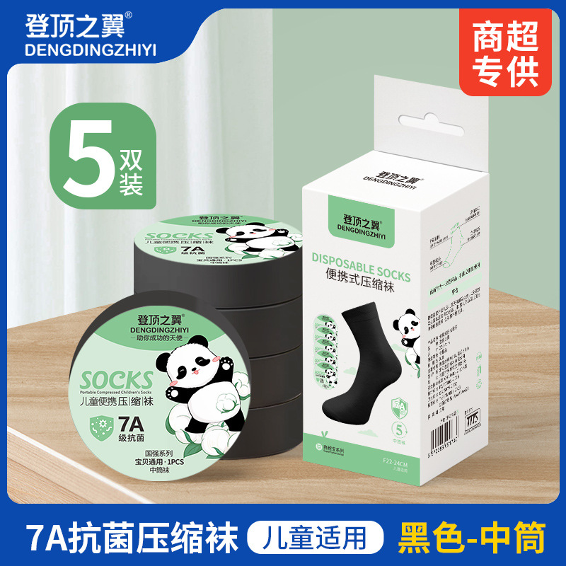 • 7A 항균 양말 - 어린이용 검정색 종아리 중간 - 5켤레