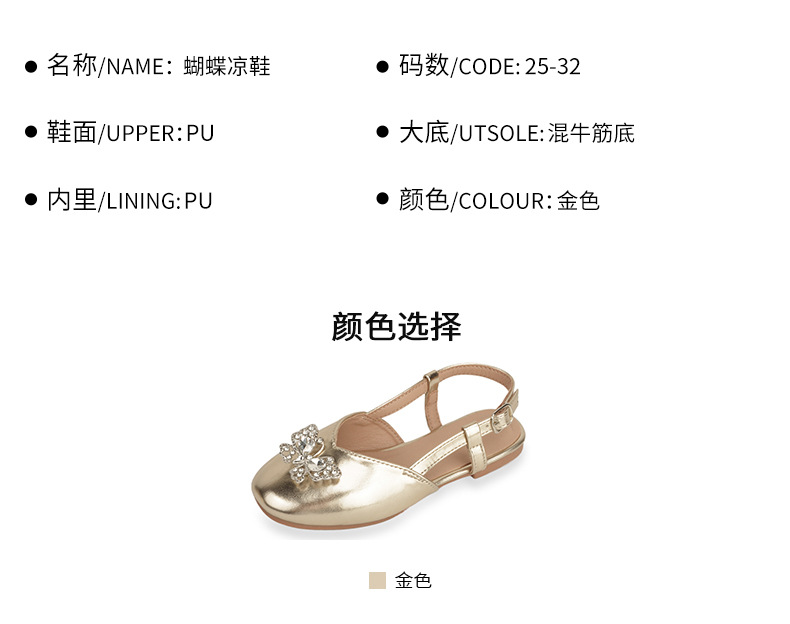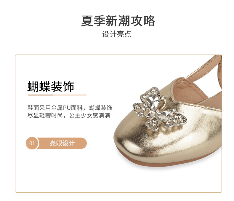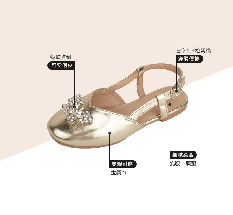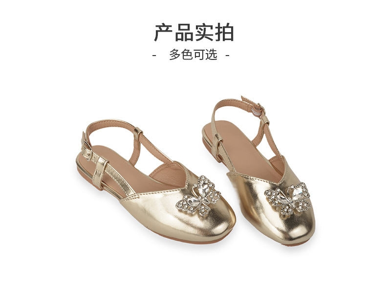 대외 무역 국경 간 2024 새로운 어린이 샌들 6-12 세 중공 발가락 샌들 나비 라인 석 공주 샌들