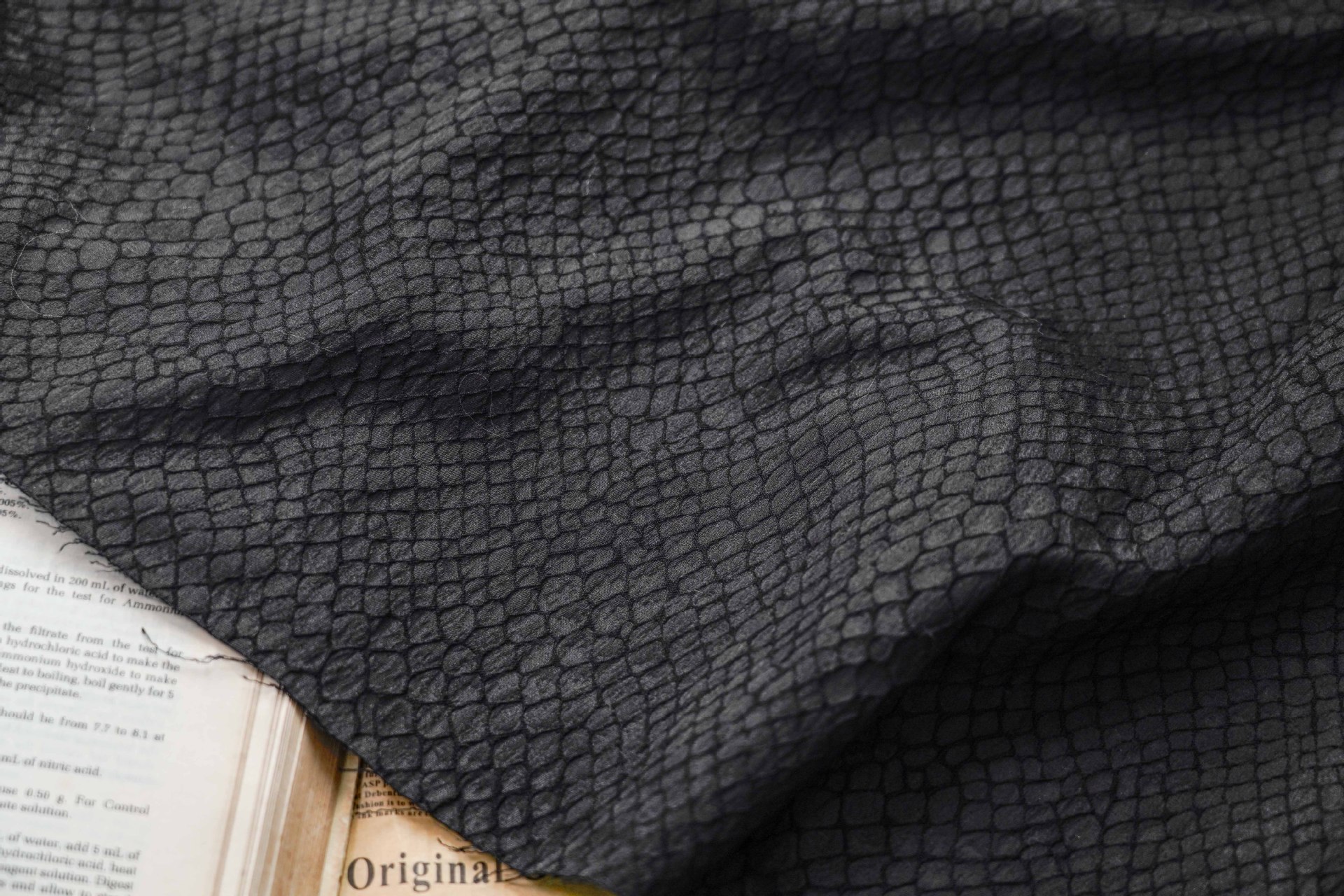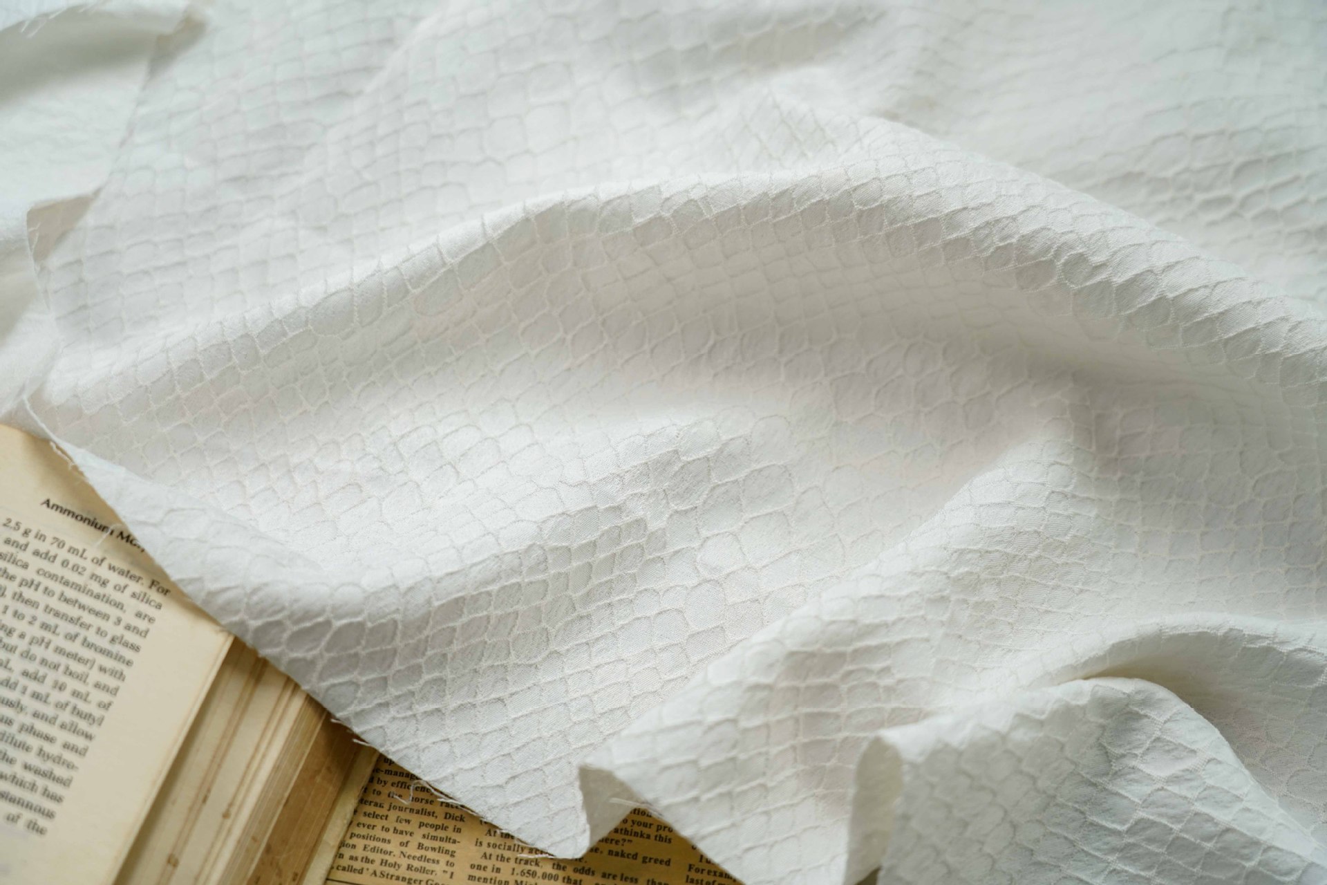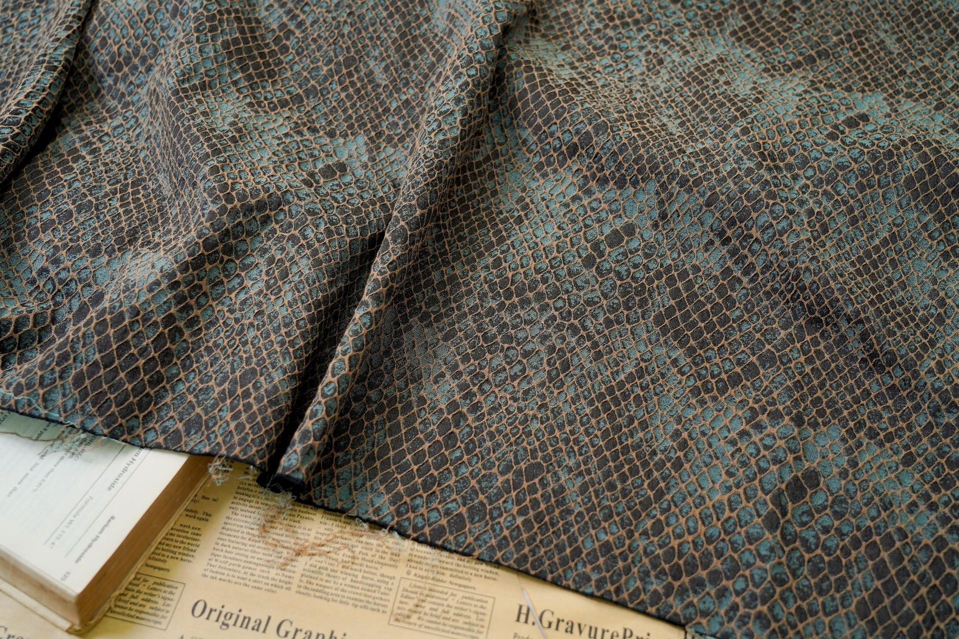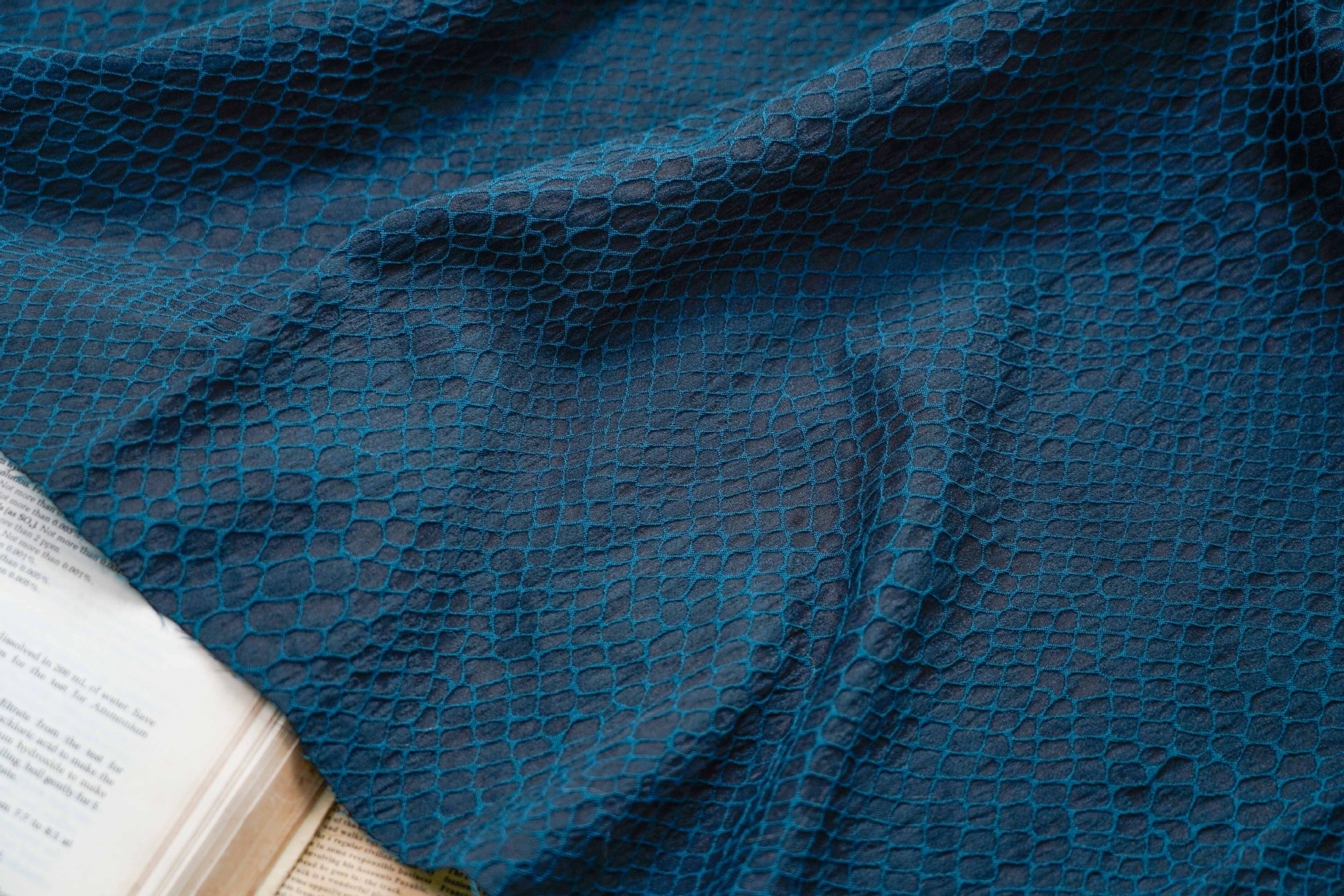 피쉬 스케일 패턴 패션 세트 원사 염색 자카드 원단 주름 빈티지 텍스처 백 원피스 청삼 의류 직물스토어 가기