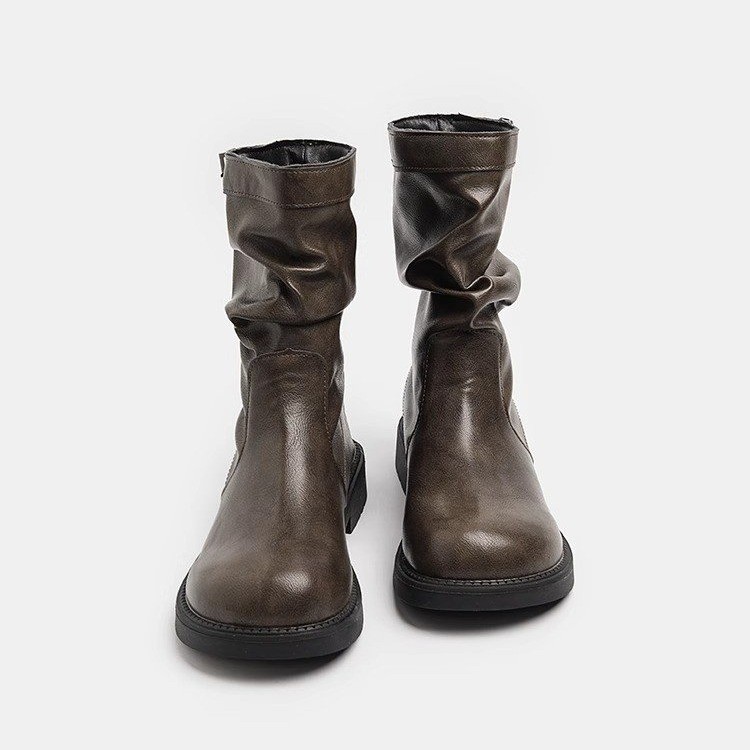 슈퍼 파이어! 한국식 쇼트부츠 여성용 파일부츠 2024 신설 가을 · 겨울 빈티지 라운드 머리 마버 부츠 마틴 부츠