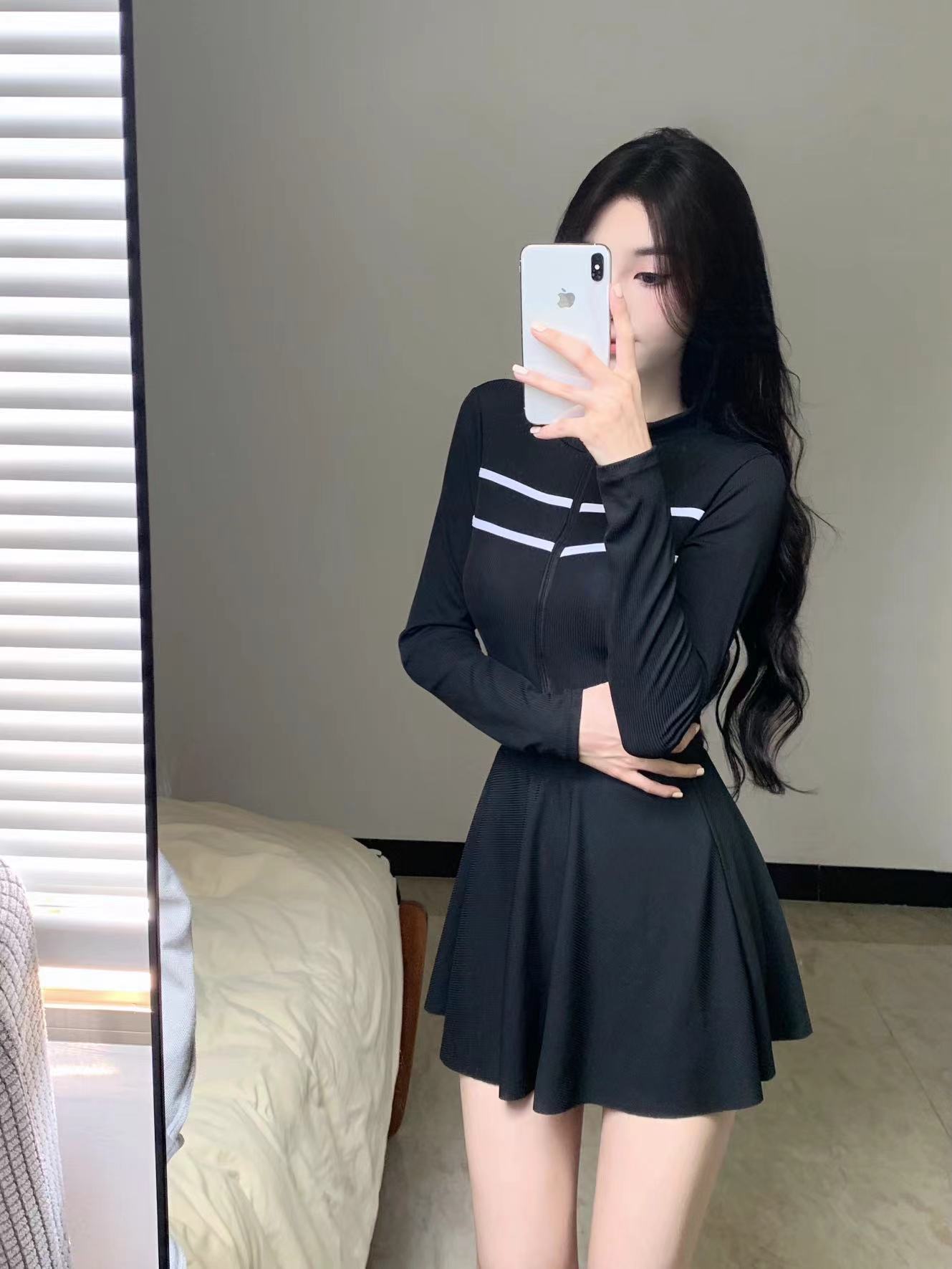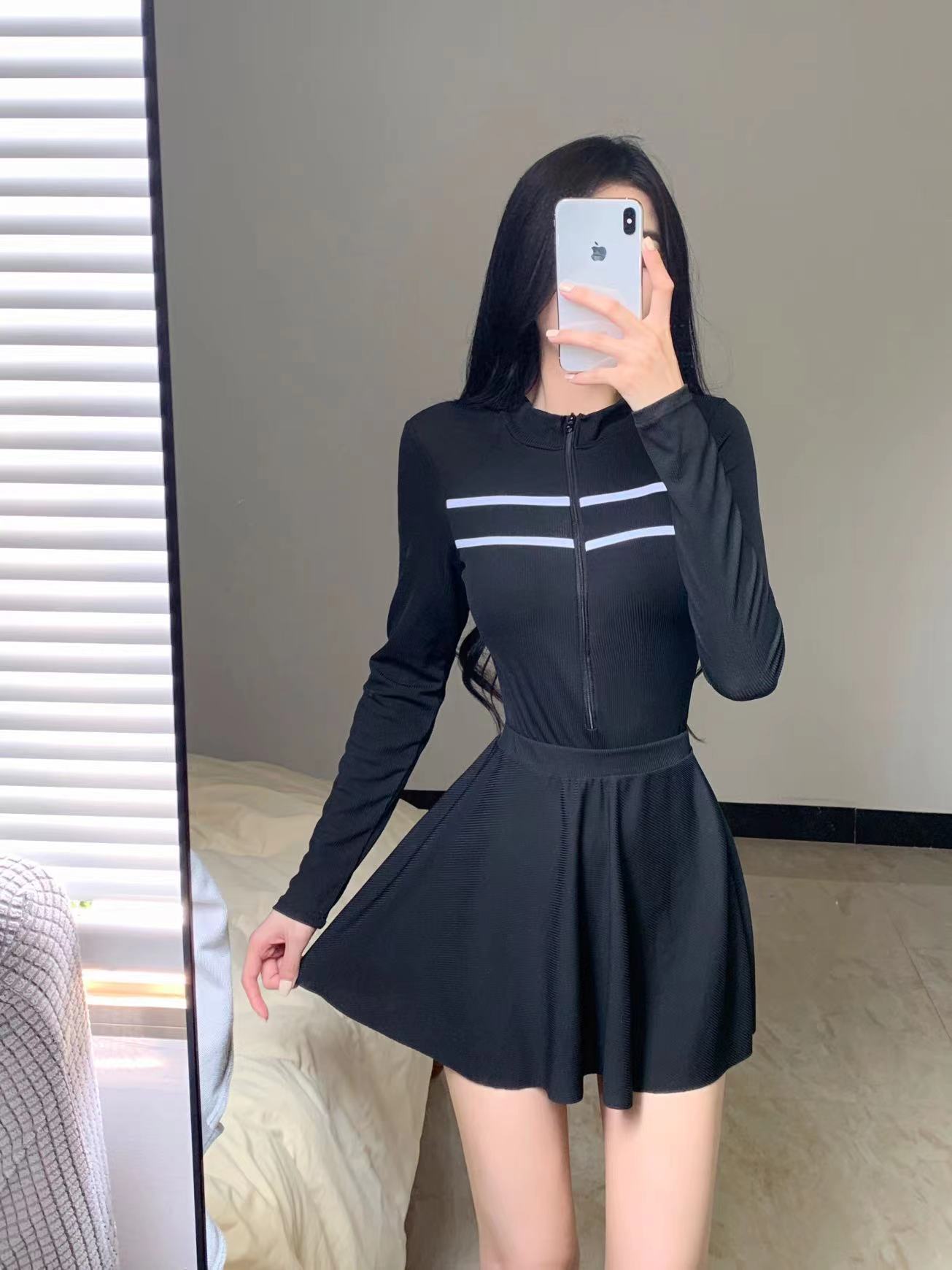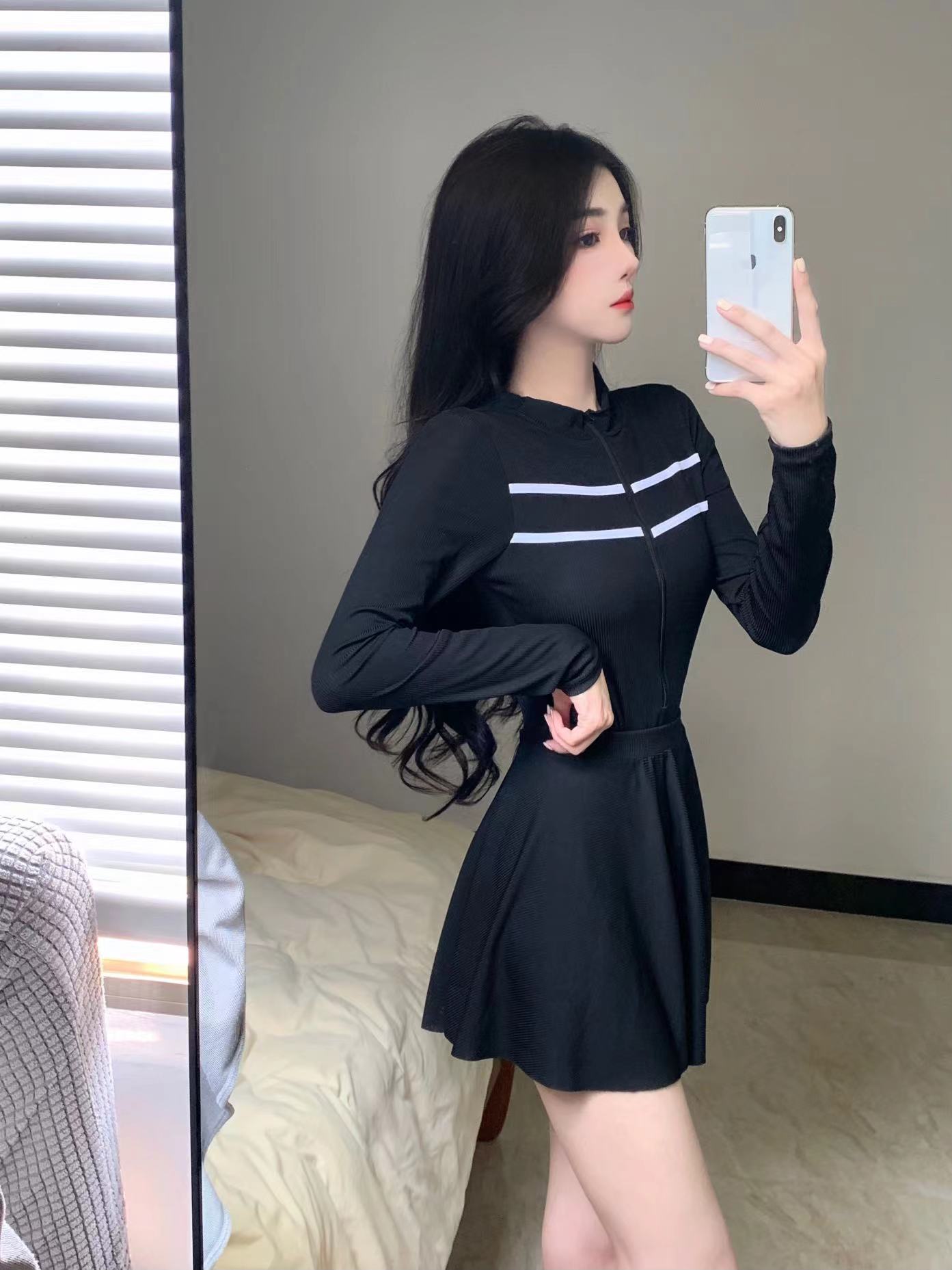 새로운 수영복 여성 여름 원피스 트라이앵글 스커트 투피스 긴소매 보수 스포츠 작은 가슴 학생 슬리밍 음영스토어 가기